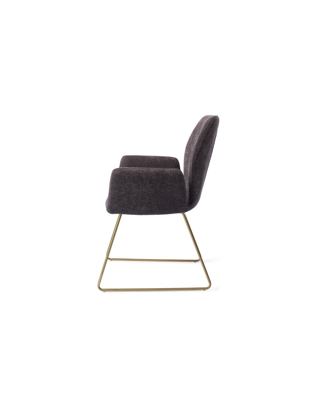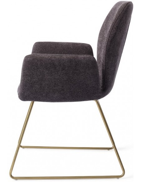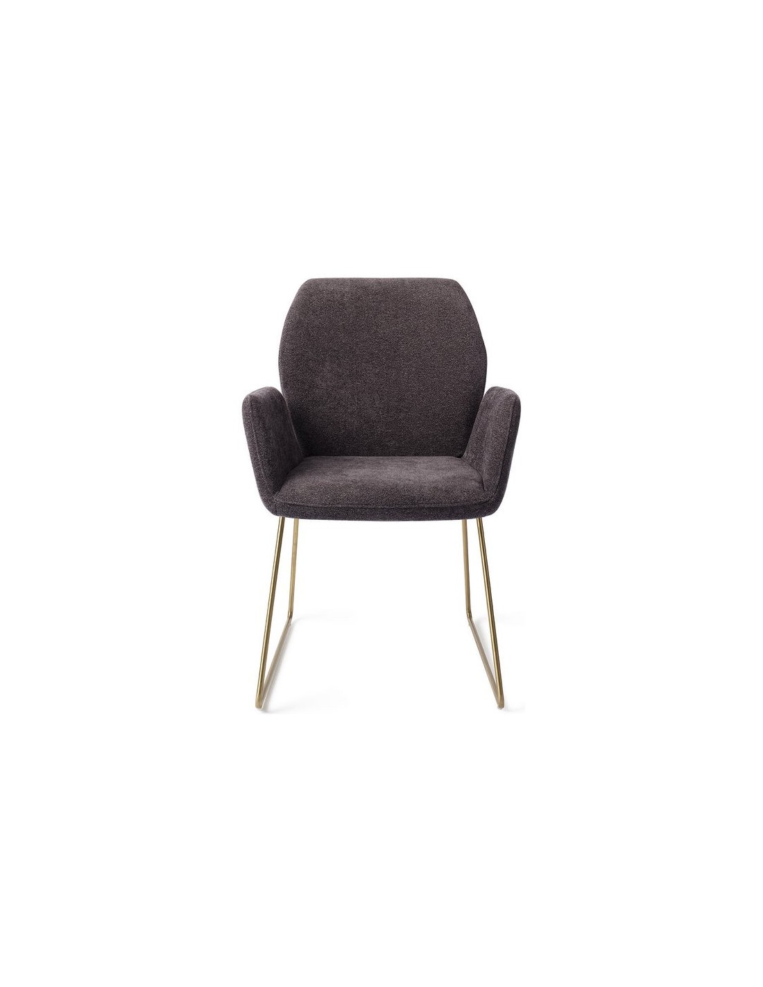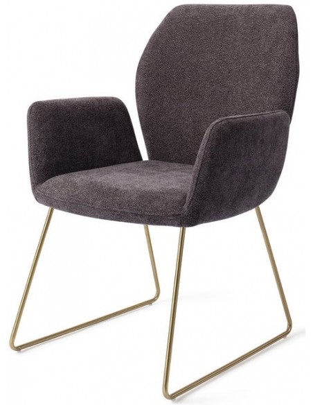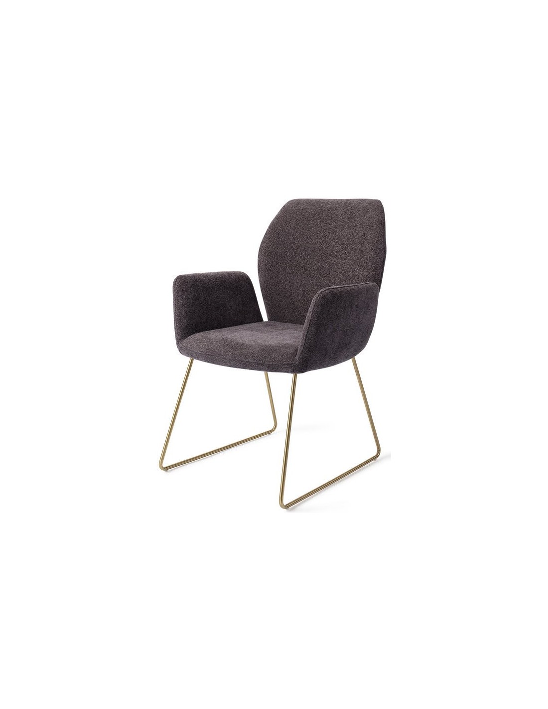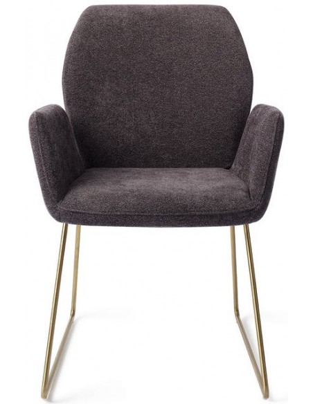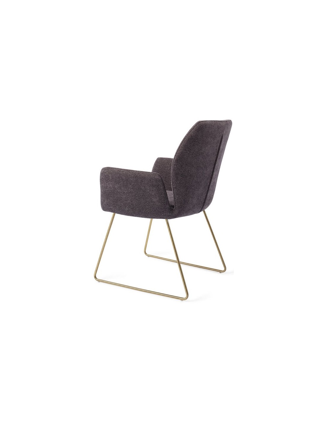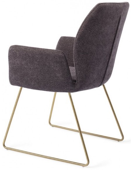 Sæt med 2 Misaki spisebordsstole i et moderne design, fremstillet med sæde i antracitfarvet polyester og stel i guldfarvet metal. Stolen måler 87 cm i højden over ryggen og med siddehøjde på 47,5 cm.