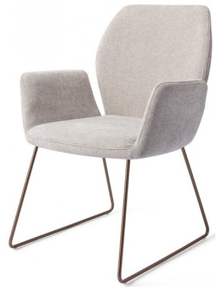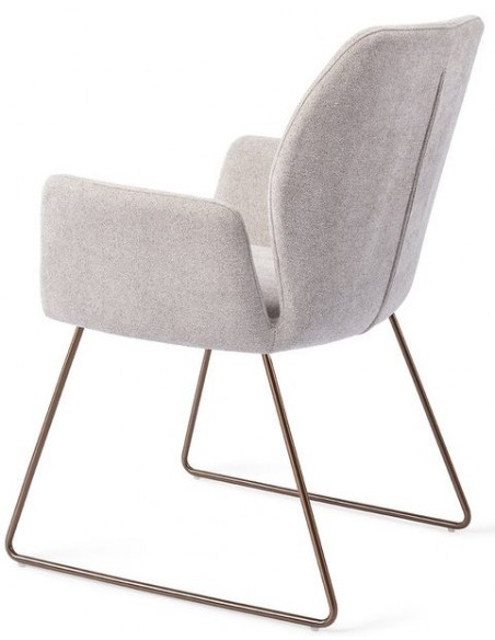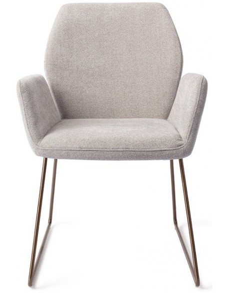 Sæt med 2 Misaki spisebordsstole i et moderne design, fremstillet med sæde i grå polyester og stel i rødguldfarvet metal. Stolen måler 87 cm i højden over ryggen og med siddehøjde på 47,5 cm.
