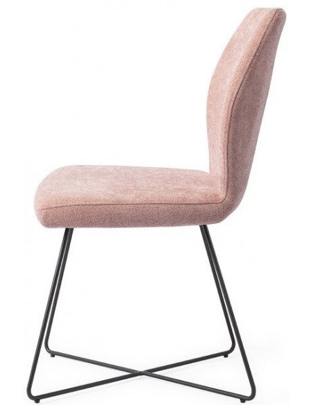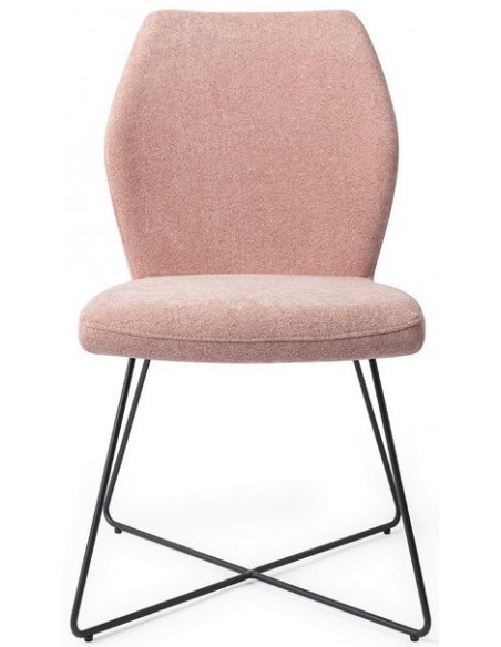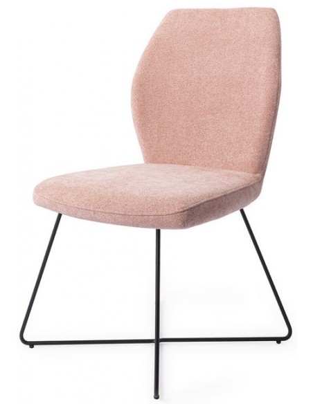 Sæt med 2 Ikata spisebordsstole i et moderne design, fremstillet med sæde i rosafarvet polyester og stel i sortlakeret metal. Stolen måler 87 cm i højden over ryggen og med siddehøjde på 47,5 cm.