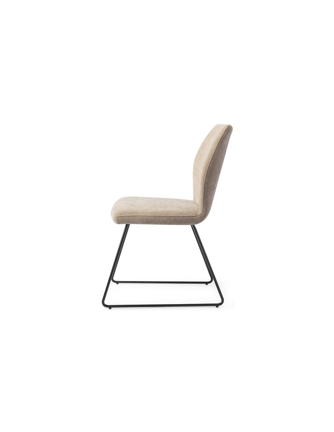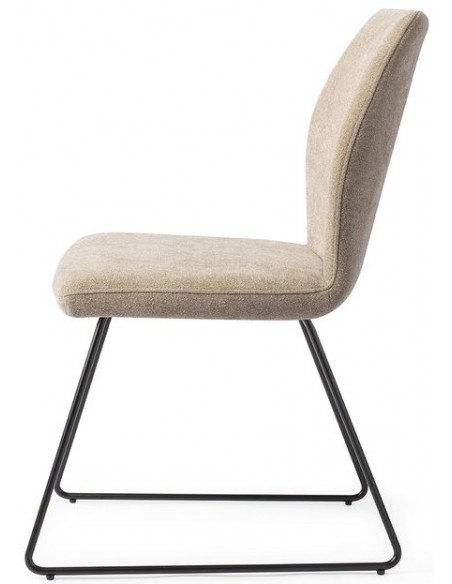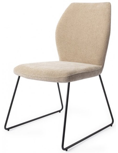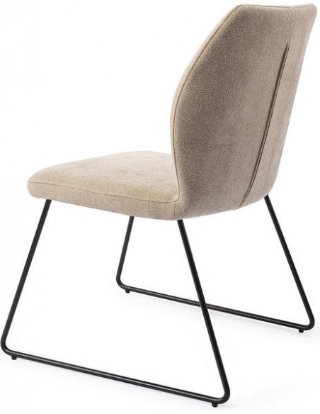Sæt med 2 Ikata spisebordsstole i et moderne design, fremstillet med sæde i karamelfarvet polyester og stel i sortlakeret metal. Stolen måler 87 cm i højden over ryggen og med siddehøjde på 47,5 cm.