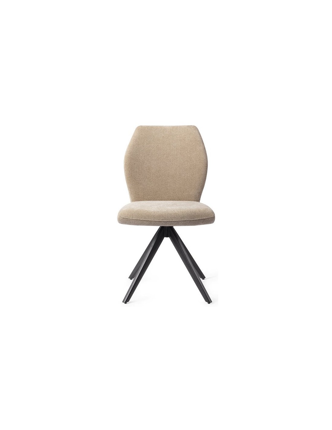 Sæt med 2 Ikata spisebordsstole i et moderne design, fremstillet med sæde i karamelfarvet polyester og stel i sortlakeret metal. Stolen måler 87 cm i højden over ryggen og med siddehøjde på 47,5 cm. Stellet er rotérbart.