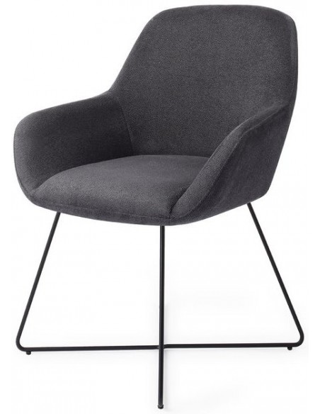 Sæt med 2 Kushi spisebordsstole i et moderne design, fremstillet med sæde i antracitfarvet polyester og stel i sortlakeret metal. Stolen måler 84 cm i højden over ryggen og med siddehøjde på 48 cm.