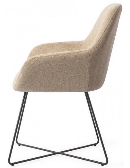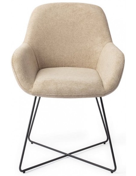 Sæt med 2 Kushi spisebordsstole i et moderne design, fremstillet med sæde i sandfarvet polyester og stel i sortlakeret metal. Stolen måler 84 cm i højden over ryggen og med siddehøjde på 48 cm.