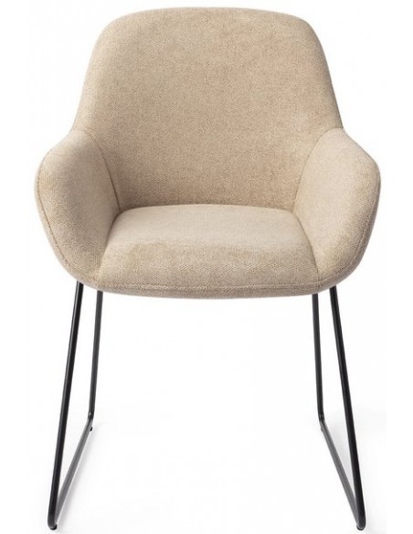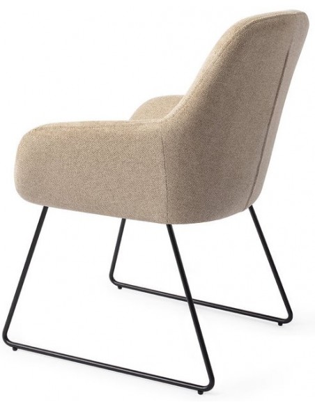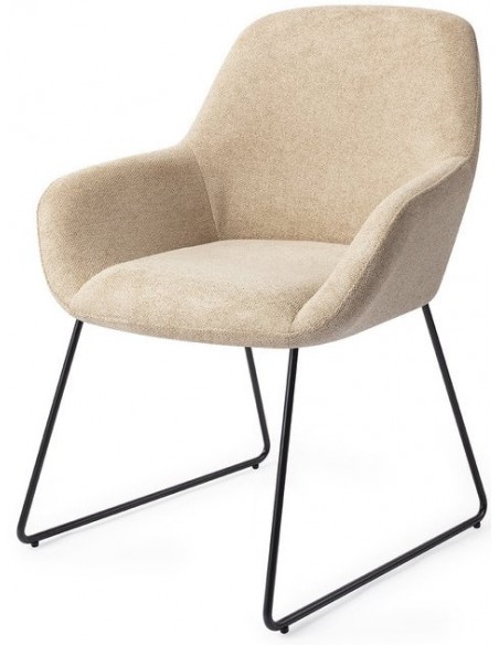 Sæt med 2 Kushi spisebordsstole i et moderne design, fremstillet med sæde i sandfarvet polyester og stel i sortlakeret metal. Stolen måler 84 cm i højden over ryggen og med siddehøjde på 48 cm.