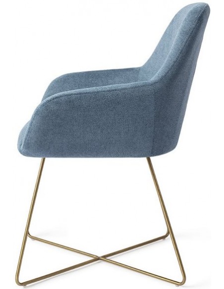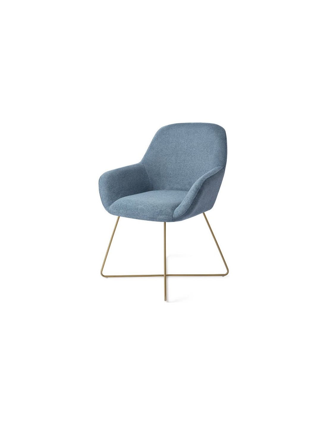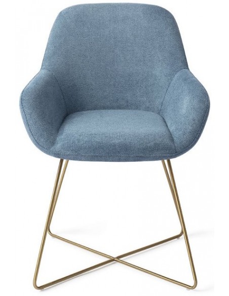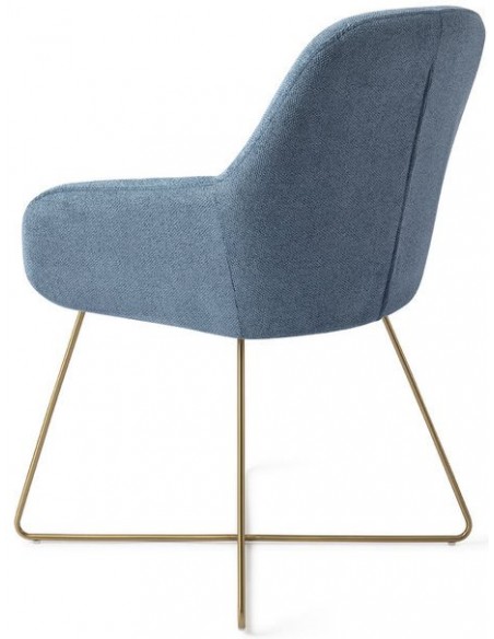 Sæt med 2 Kushi spisebordsstole i et moderne design, fremstillet med sæde i havblå polyester og stel i guldfarvet metal. Stolen måler 84 cm i højden over ryggen og med siddehøjde på 48 cm.