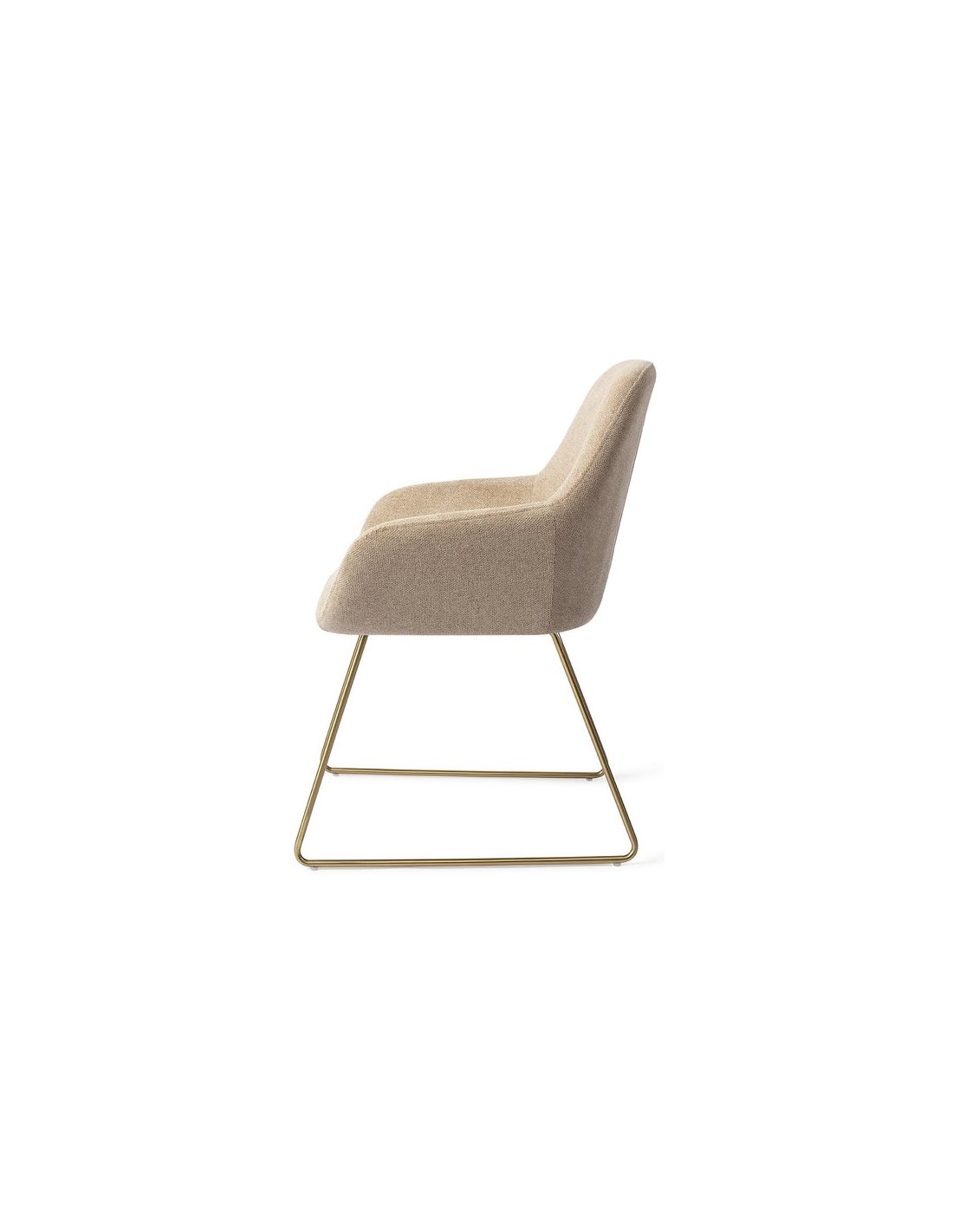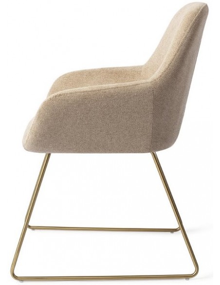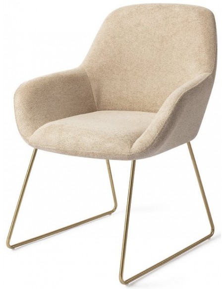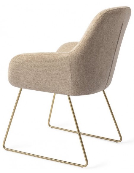 Sæt med 2 Kushi spisebordsstole i et moderne design, fremstillet med sæde i sandfarvet polyester og stel i guldfarvet metal. Stolen måler 84 cm i højden over ryggen og med siddehøjde på 48 cm.