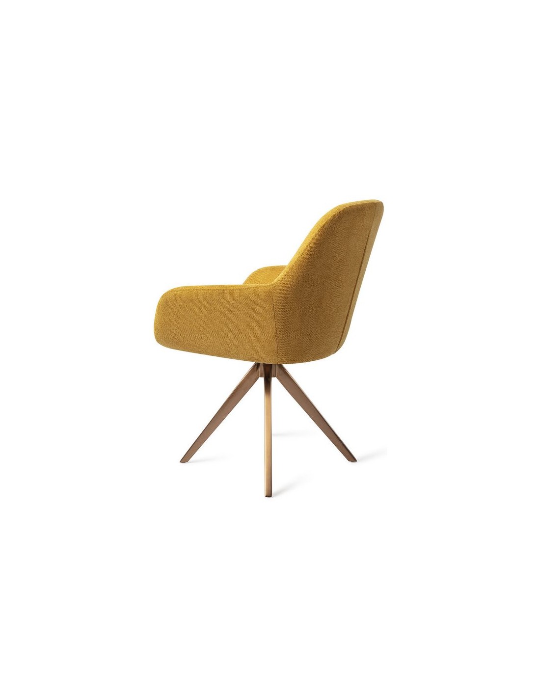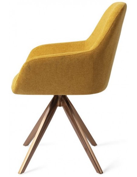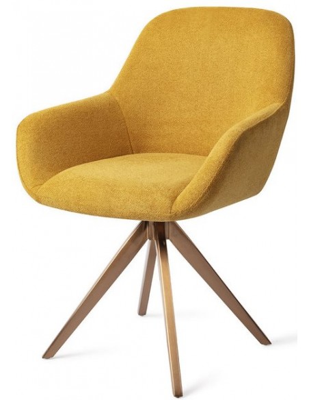 Sæt med 2 Kushi spisebordsstole i et moderne design, fremstillet med sæde i korngul polyester og stel i rødguldfarvet metal. Stolen måler 84 cm i højden over ryggen og med siddehøjde på 48 cm. Stellet er rotérbart.