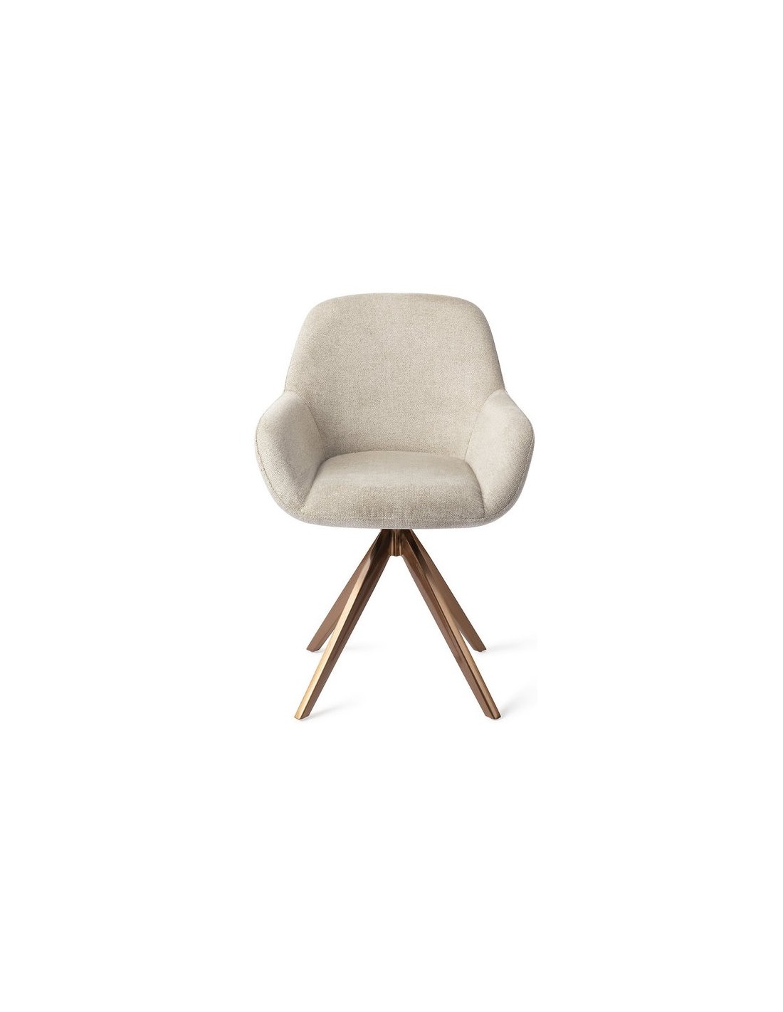 Sæt med 2 Kushi spisebordsstole i et moderne design, fremstillet med sæde i beige polyester og stel i rødguldfarvet metal. Stolen måler 84 cm i højden over ryggen og med siddehøjde på 48 cm. Stellet er rotérbart.