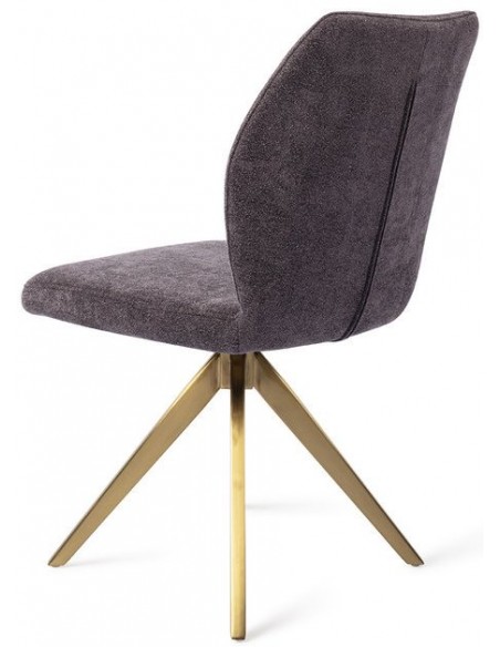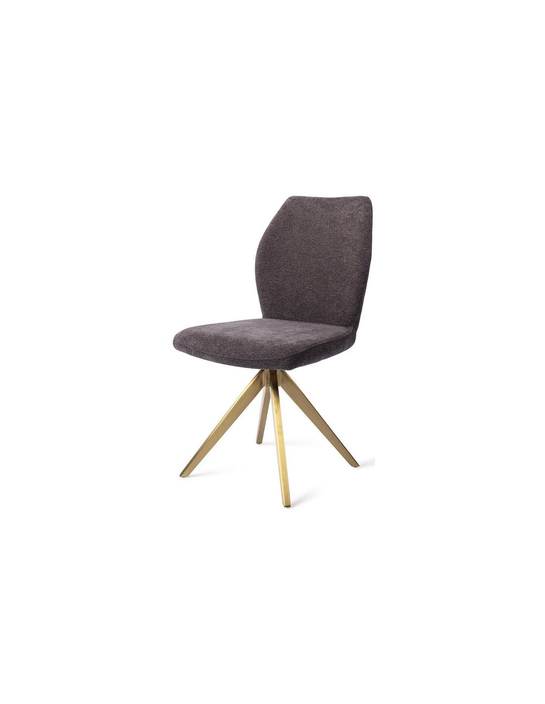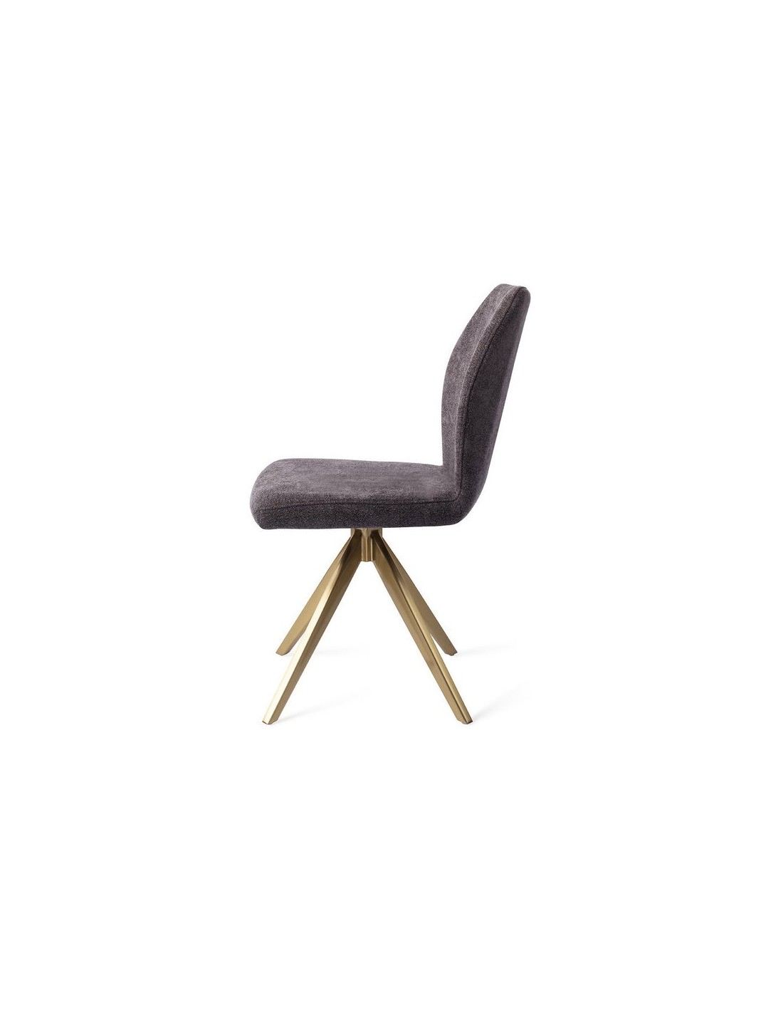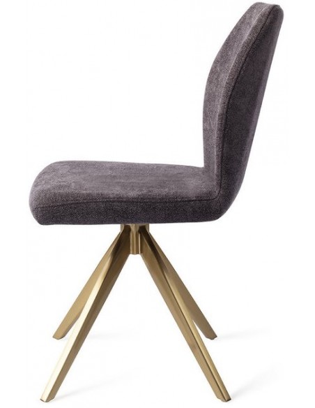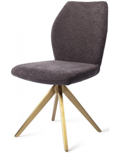 Sæt med 2 Ikata spisebordsstole i et moderne design, fremstillet med sæde i antracitfarvet polyester og stel i guldfarvet metal. Stolen måler 87 cm i højden over ryggen og med siddehøjde på 47,5 cm. Stellet er rotérbart.