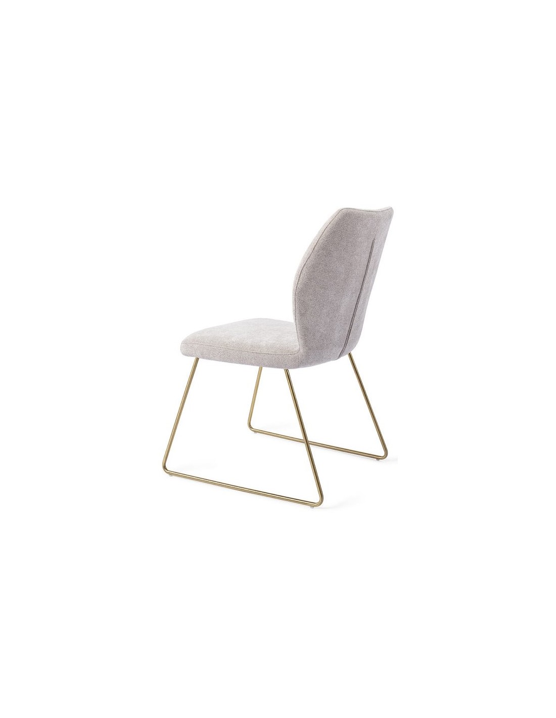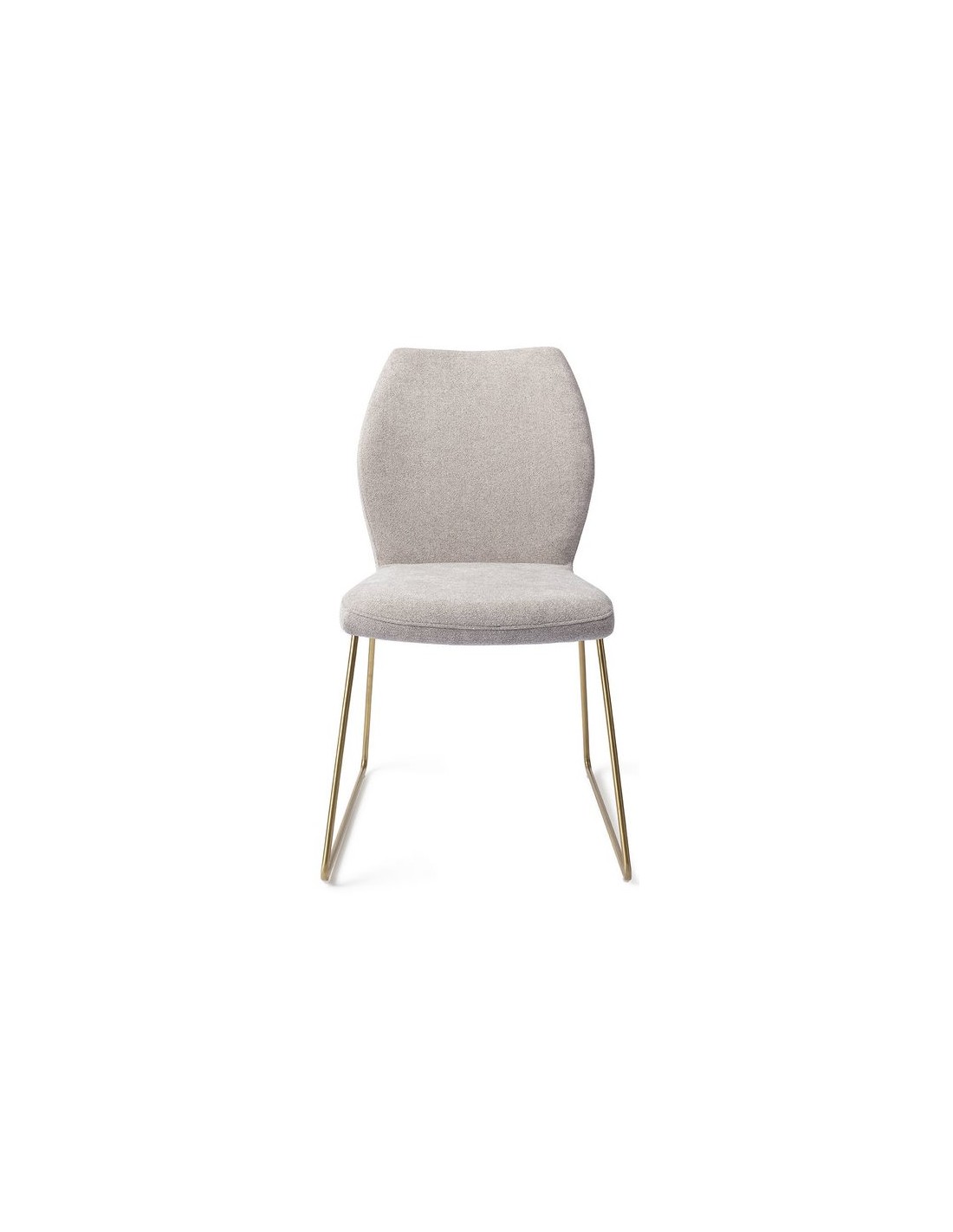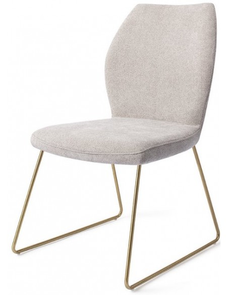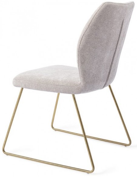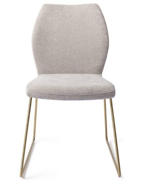 Sæt med 2 Ikata spisebordsstole i et moderne design, fremstillet med sæde i gråt polyester og stel i guldfarvet metal. Stolen måler 87 cm i højden over ryggen og med siddehøjde på 47,5 cm.