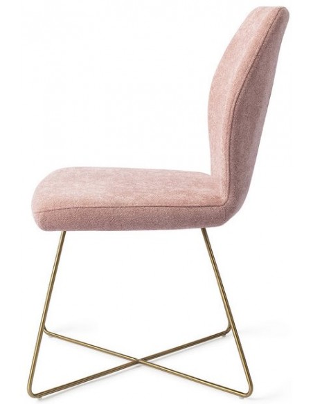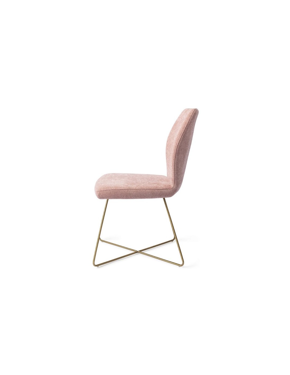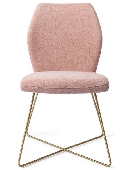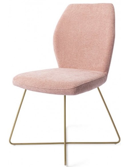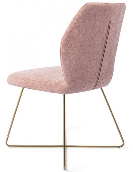 Sæt med 2 Ikata spisebordsstole i et moderne design, fremstillet med sæde i rosafarvet polyester og stel i guldfarvet metal. Stolen måler 87 cm i højden over ryggen og med siddehøjde på 47,5 cm.