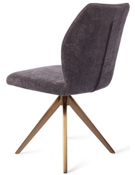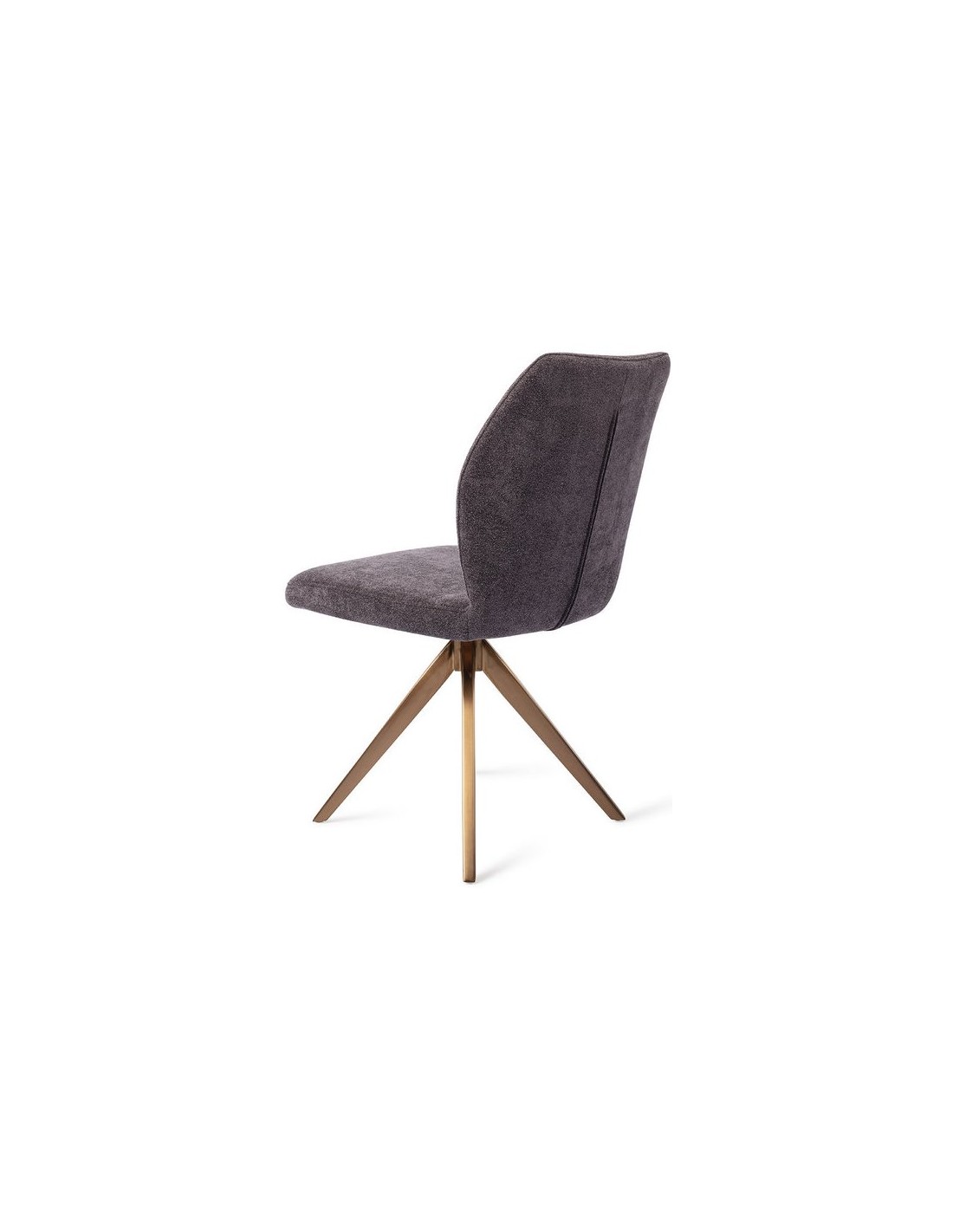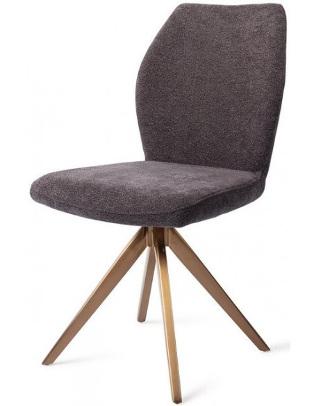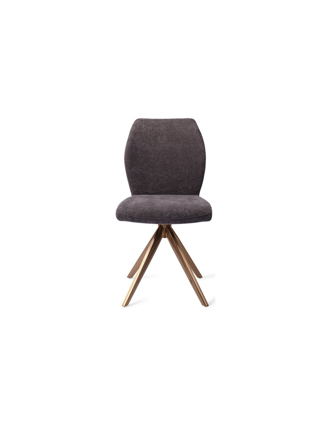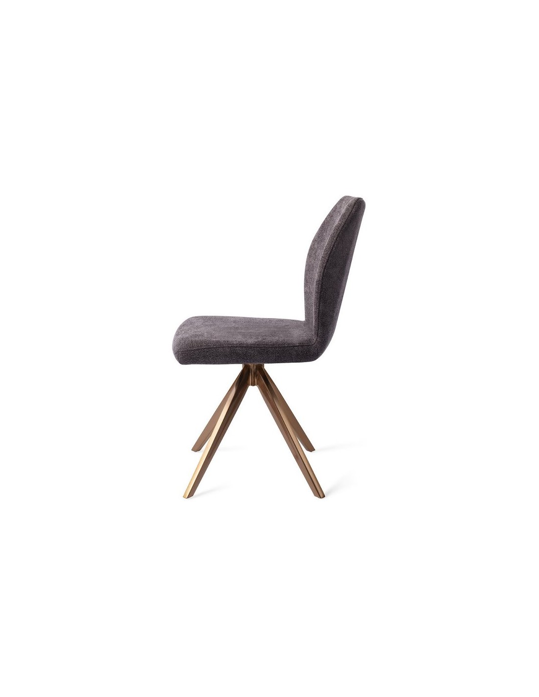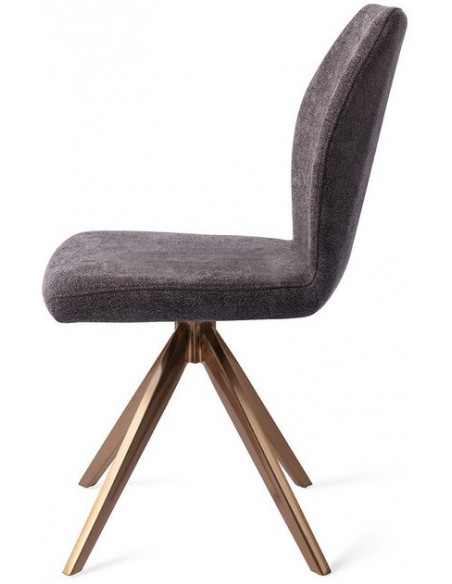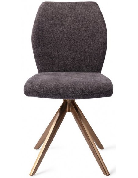 Sæt med 2 Ikata spisebordsstole i et moderne design, fremstillet med sæde i antracitfarvet polyester og stel i rødguldfarvet metal. Stolen måler 87 cm i højden over ryggen og med siddehøjde på 47,5 cm. Stellet er rotérbart.