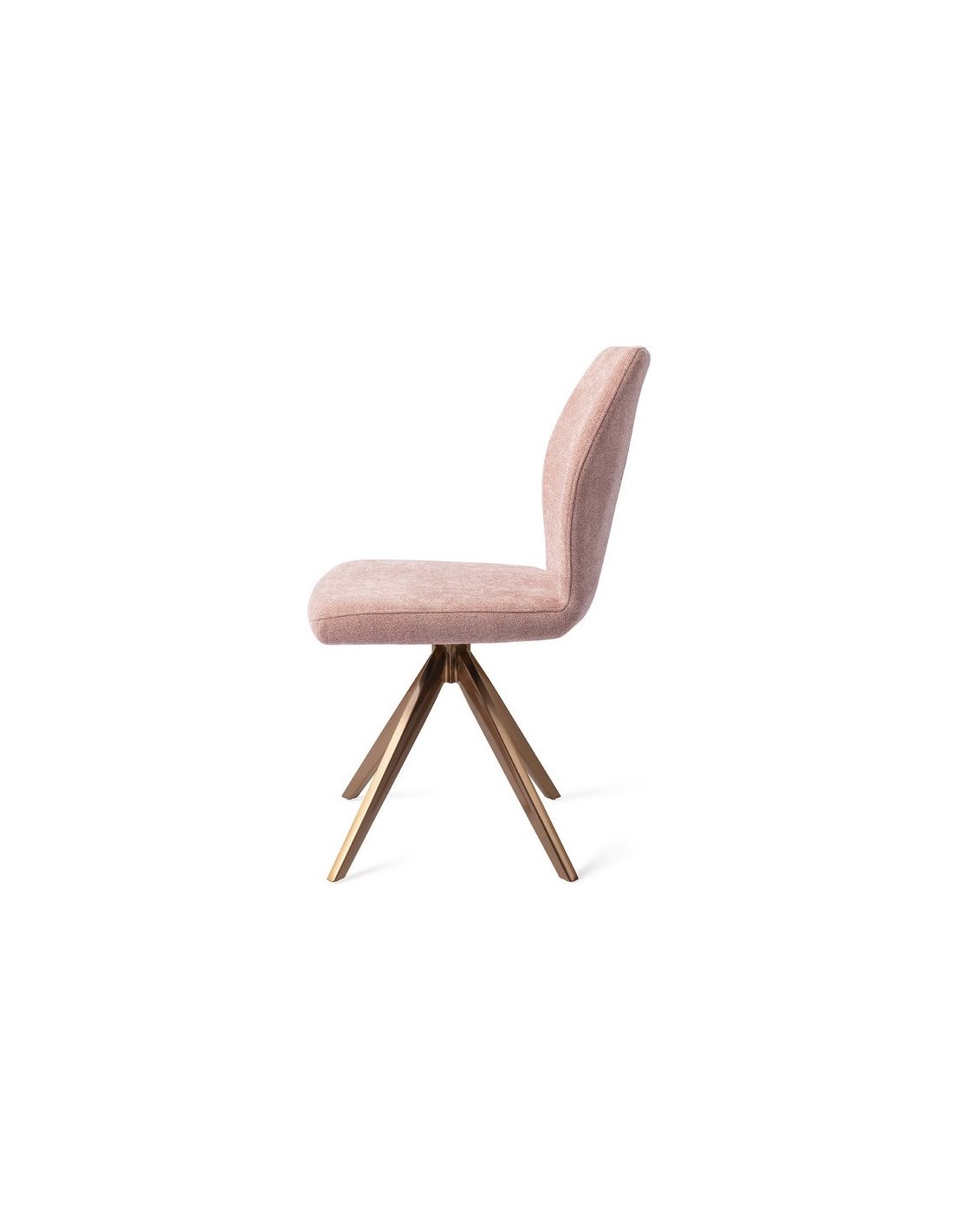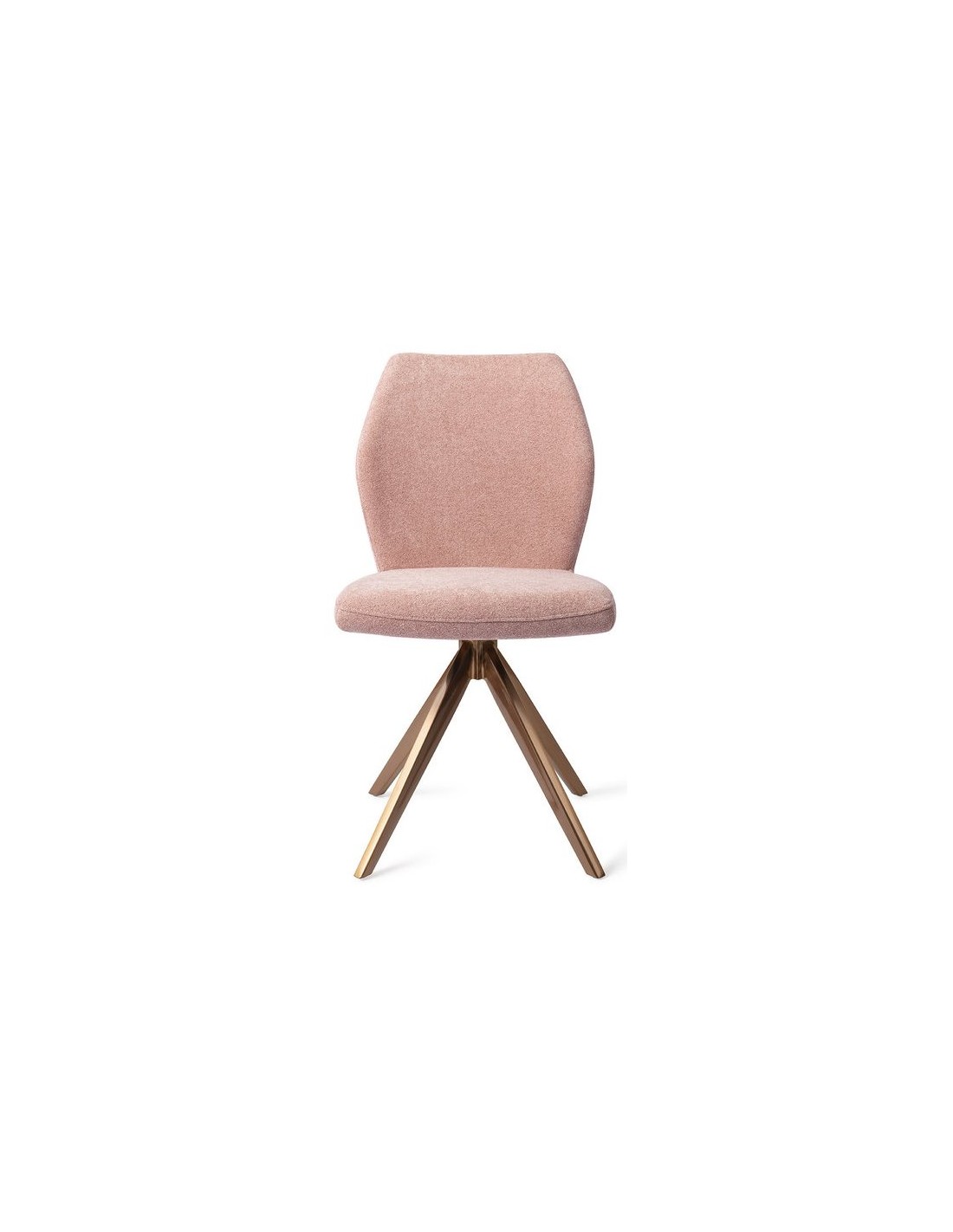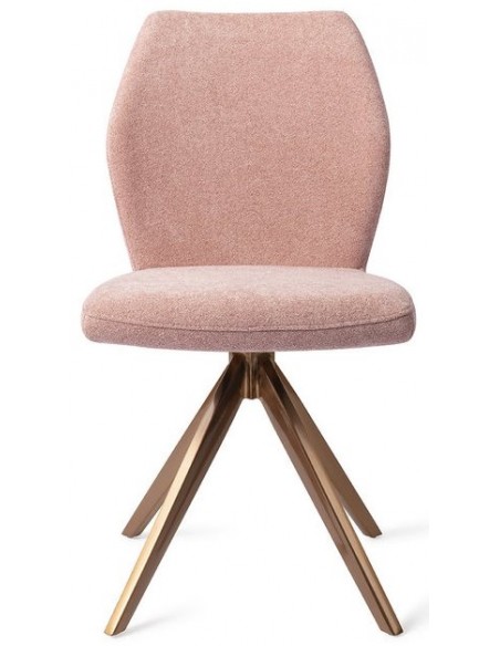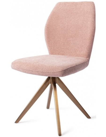 Sæt med 2 Ikata spisebordsstole i et moderne design, fremstillet med sæde i rosa polyester og stel i rødguldfarvet metal. Stolen måler 87 cm i højden over ryggen og med siddehøjde på 47,5 cm. Stellet er rotérbart.