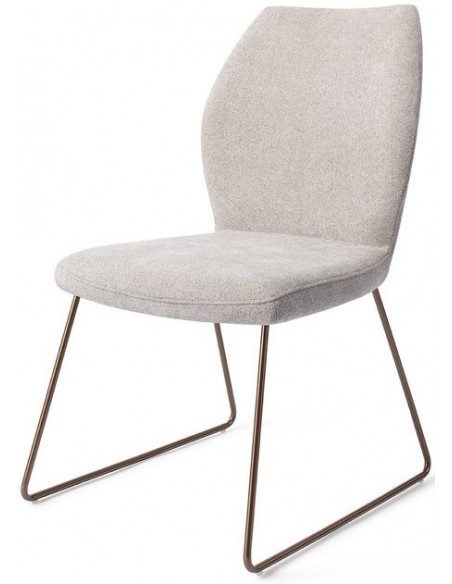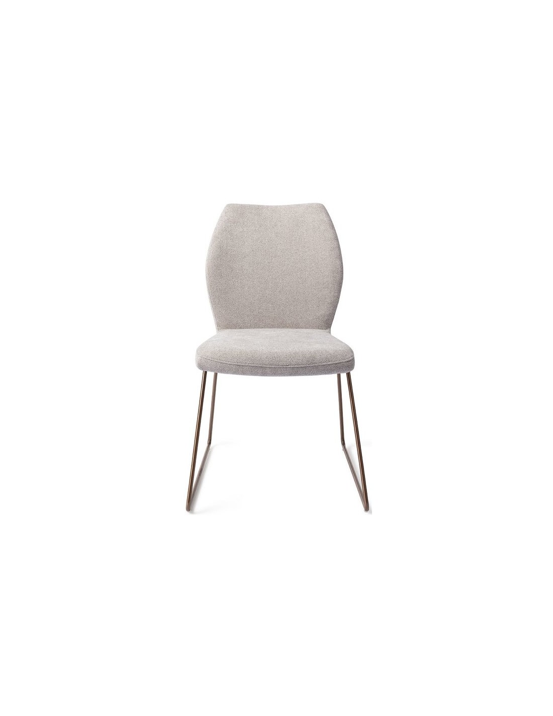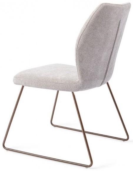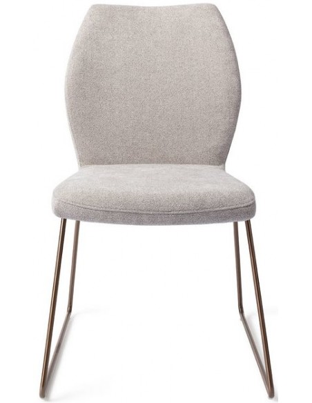 Sæt med 2 Ikata spisebordsstole i et moderne design, fremstillet med sæde i gråt polyester og stel i rødguldfarvet metal. Stolen måler 87 cm i højden over ryggen og med siddehøjde på 47,5 cm.