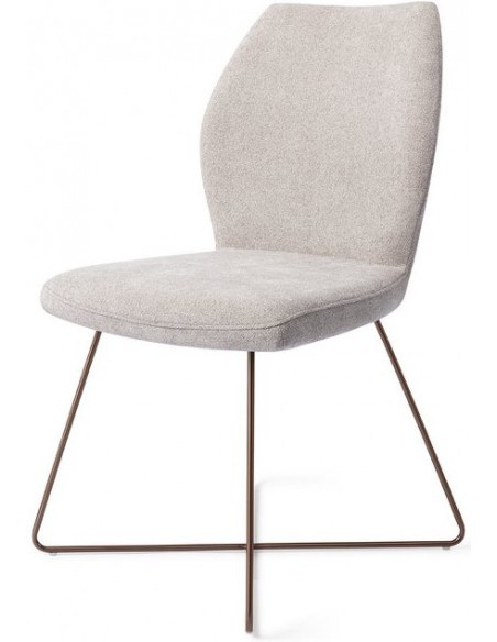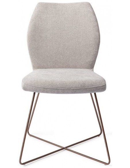 Sæt med 2 Ikata spisebordsstole i et moderne design, fremstillet med sæde i gråt polyester og stel i rødguldfarvet metal. Stolen måler 87 cm i højden over ryggen og med siddehøjde på 47,5 cm.