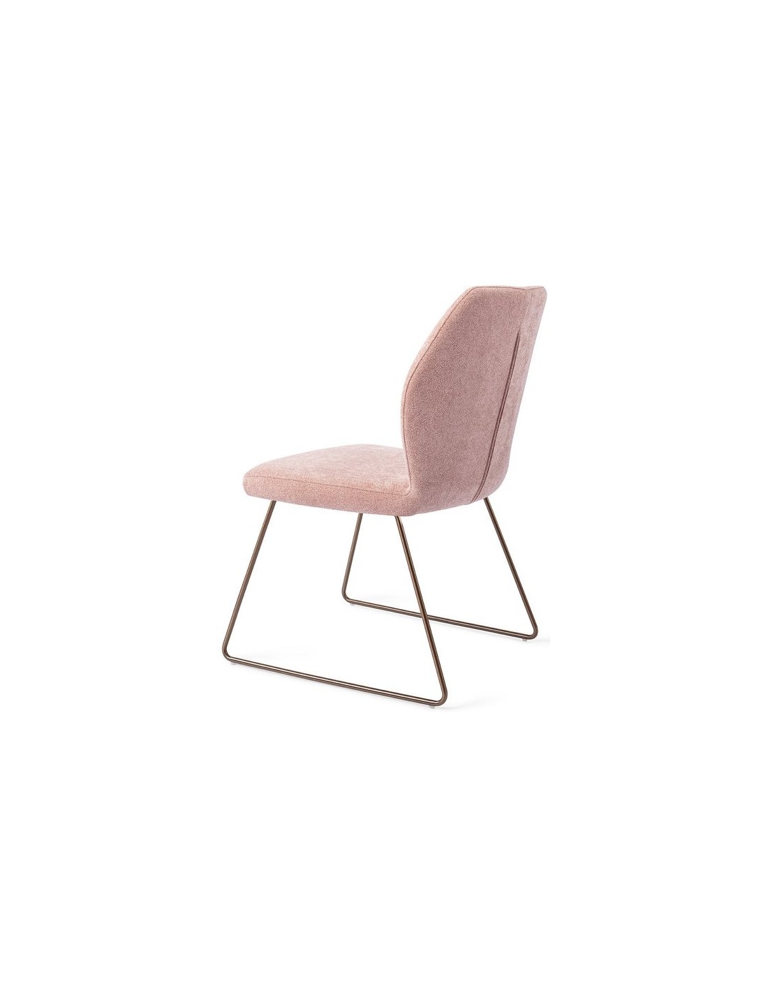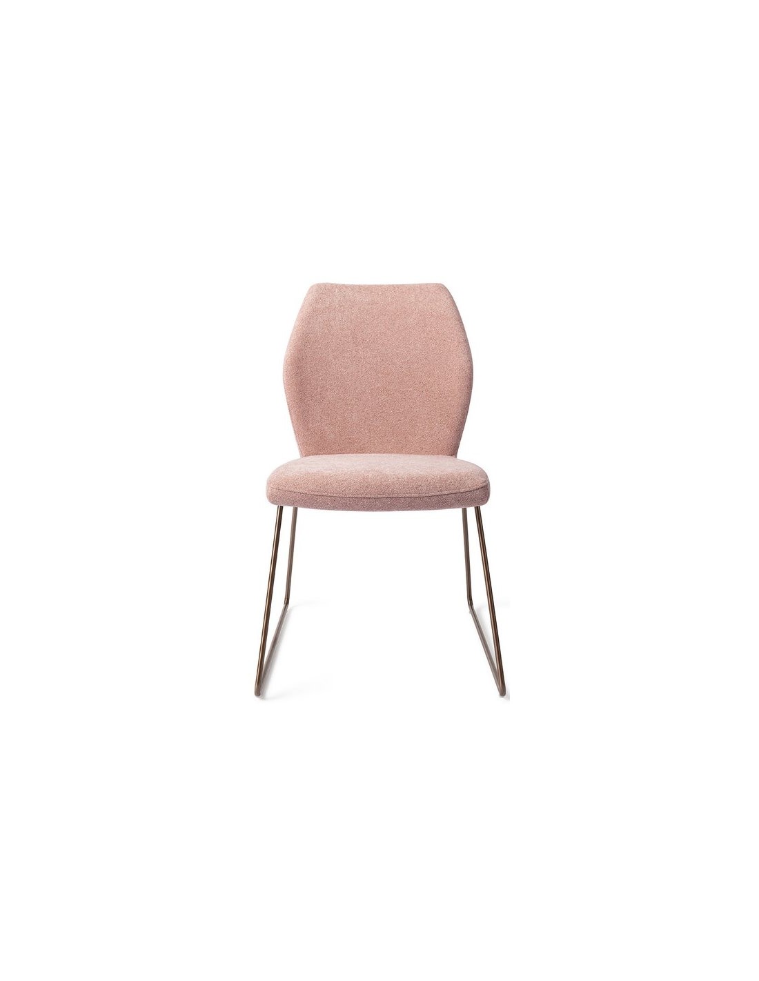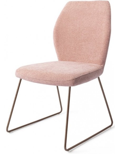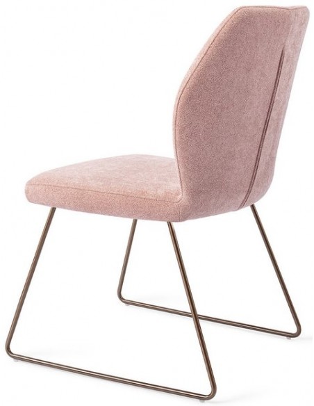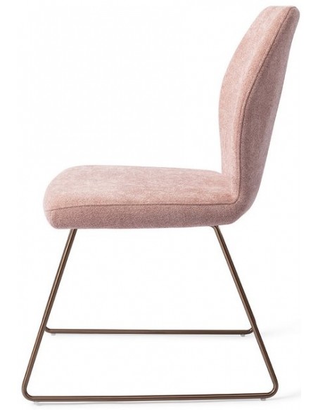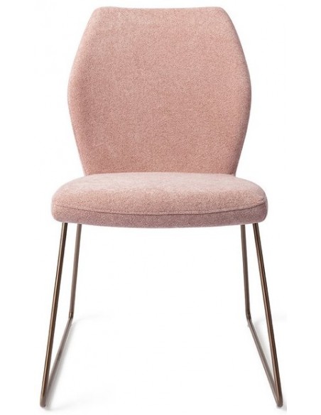 Sæt med 2 Ikata spisebordsstole i et moderne design, fremstillet med sæde i rosa polyester og stel i rødguldfarvet metal. Stolen måler 87 cm i højden over ryggen og med siddehøjde på 47,5 cm.