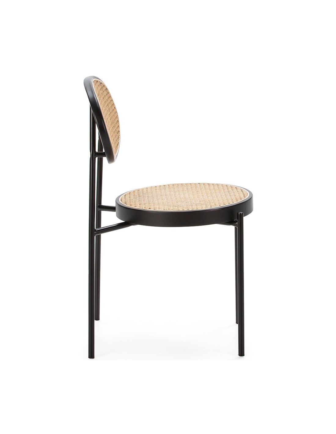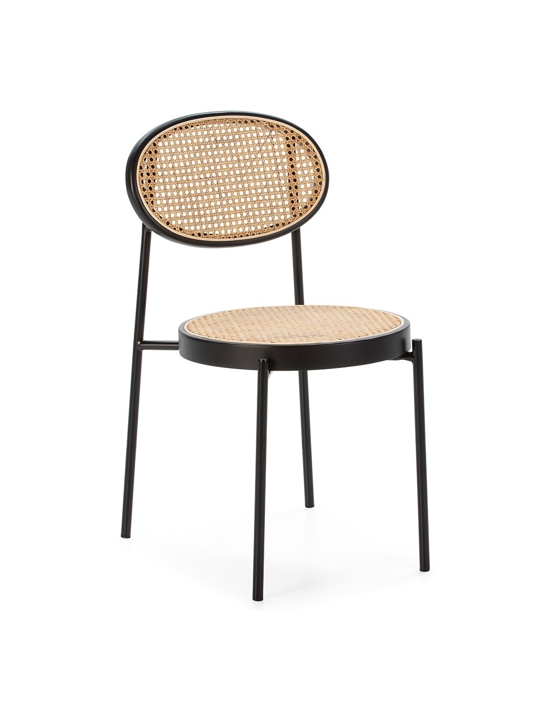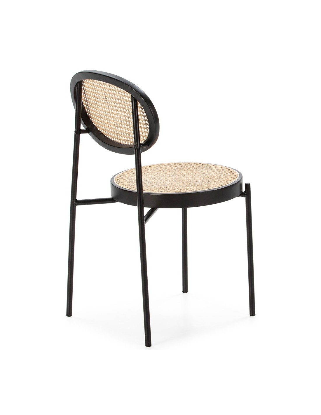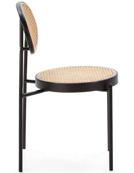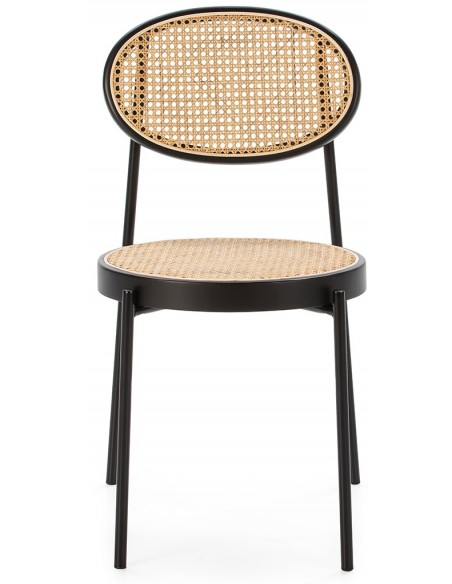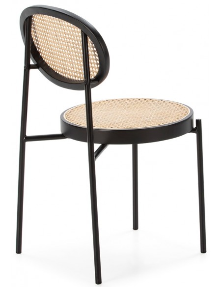 Spisebordsstol udført i et smukt design af sortlakeret træ og naturfarvet rattan. Stolen måler 83 cm i højden over ryggen og med siddehøjde på 47 cm.