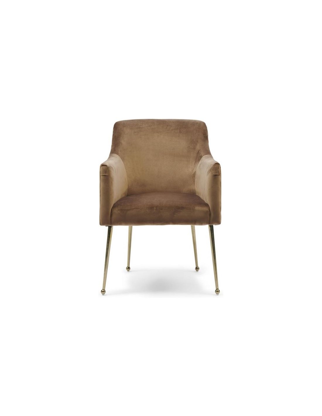 The Smith spisebordsstol i velour og jern H84 cm - Antik guld/Minkbrun