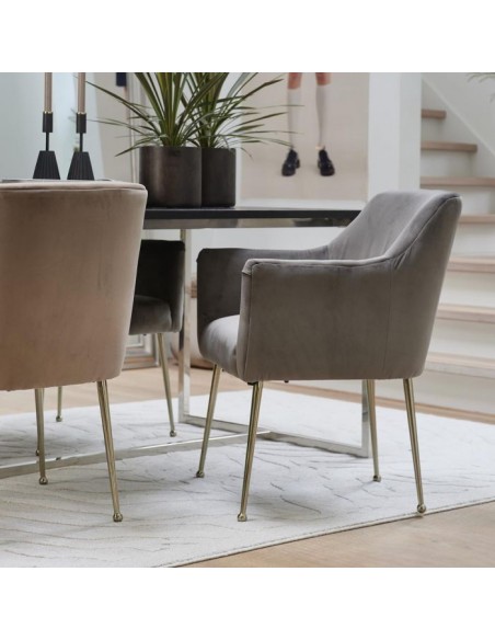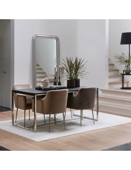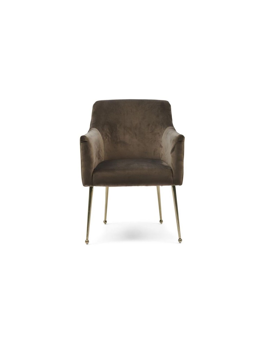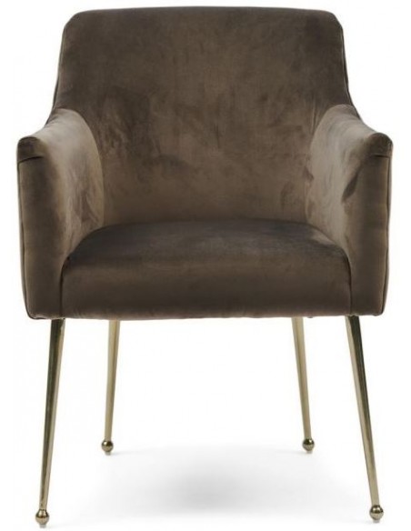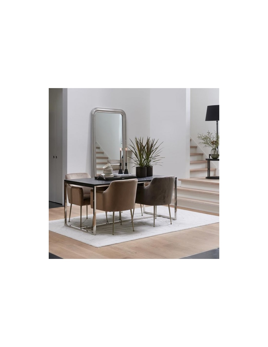 Riviera Maison spisebordsstol udført i et design af antracit velour og antik guldfarvet jern. Spisebordsstolen måler 84 cm i højden over ryggen og 66 x 66 cm i bredde og dybde. Siddehøjden er 48 cm.