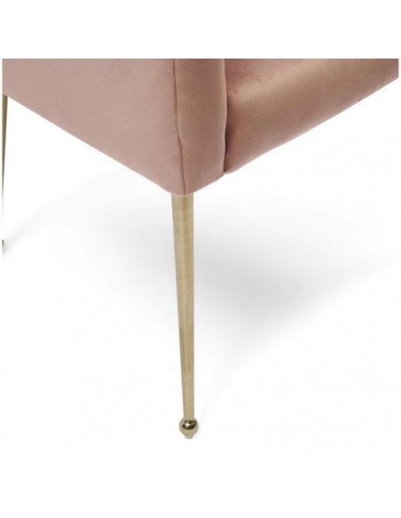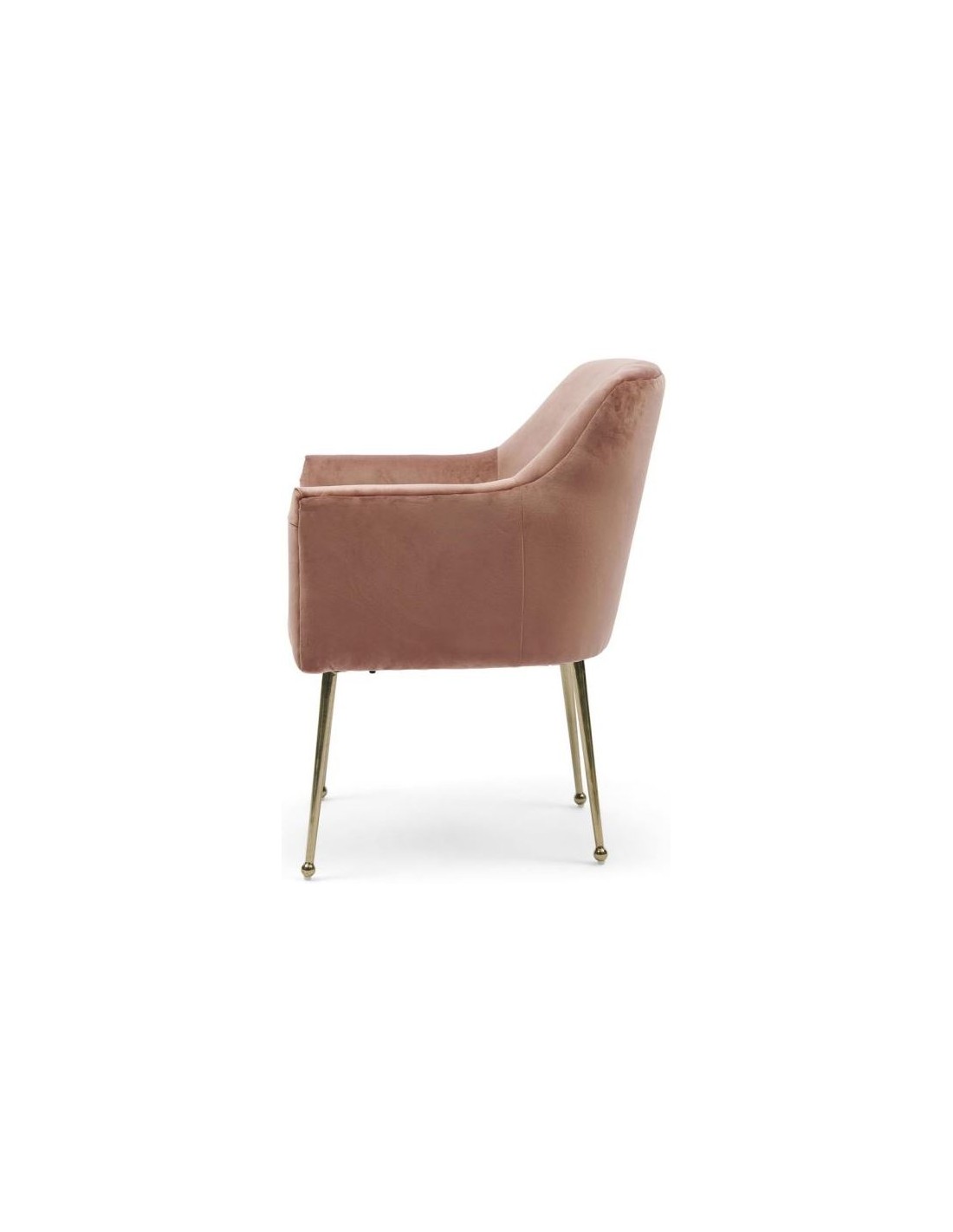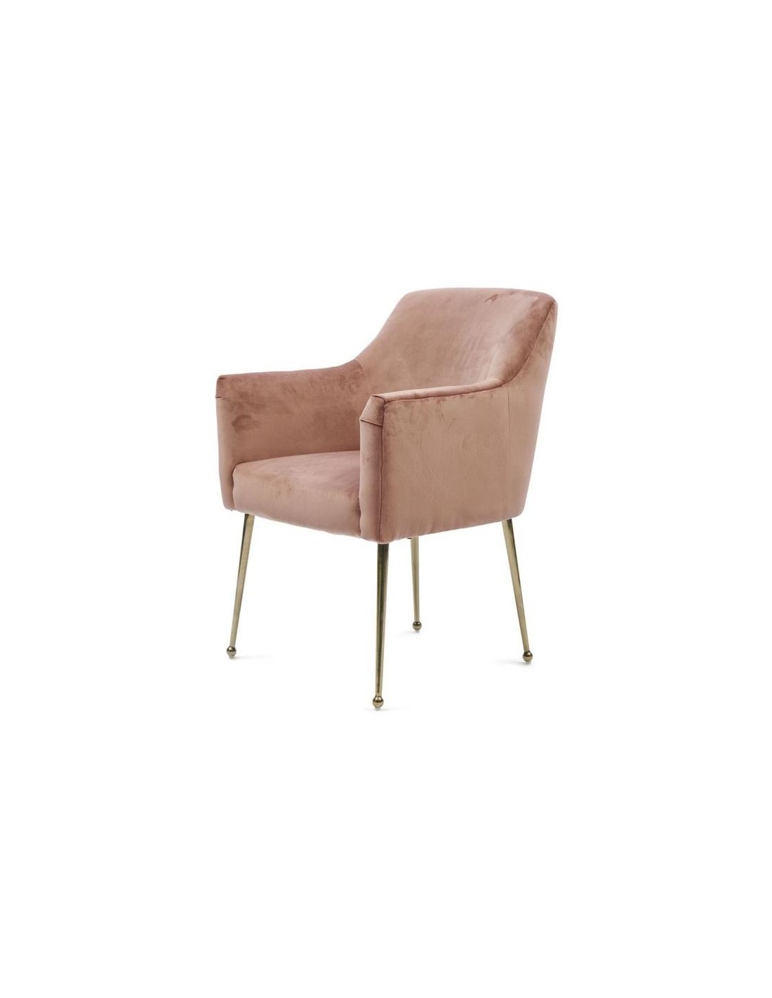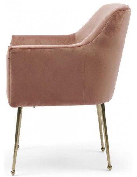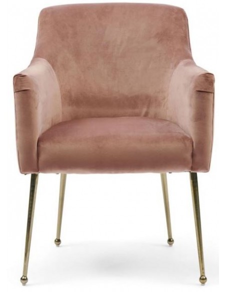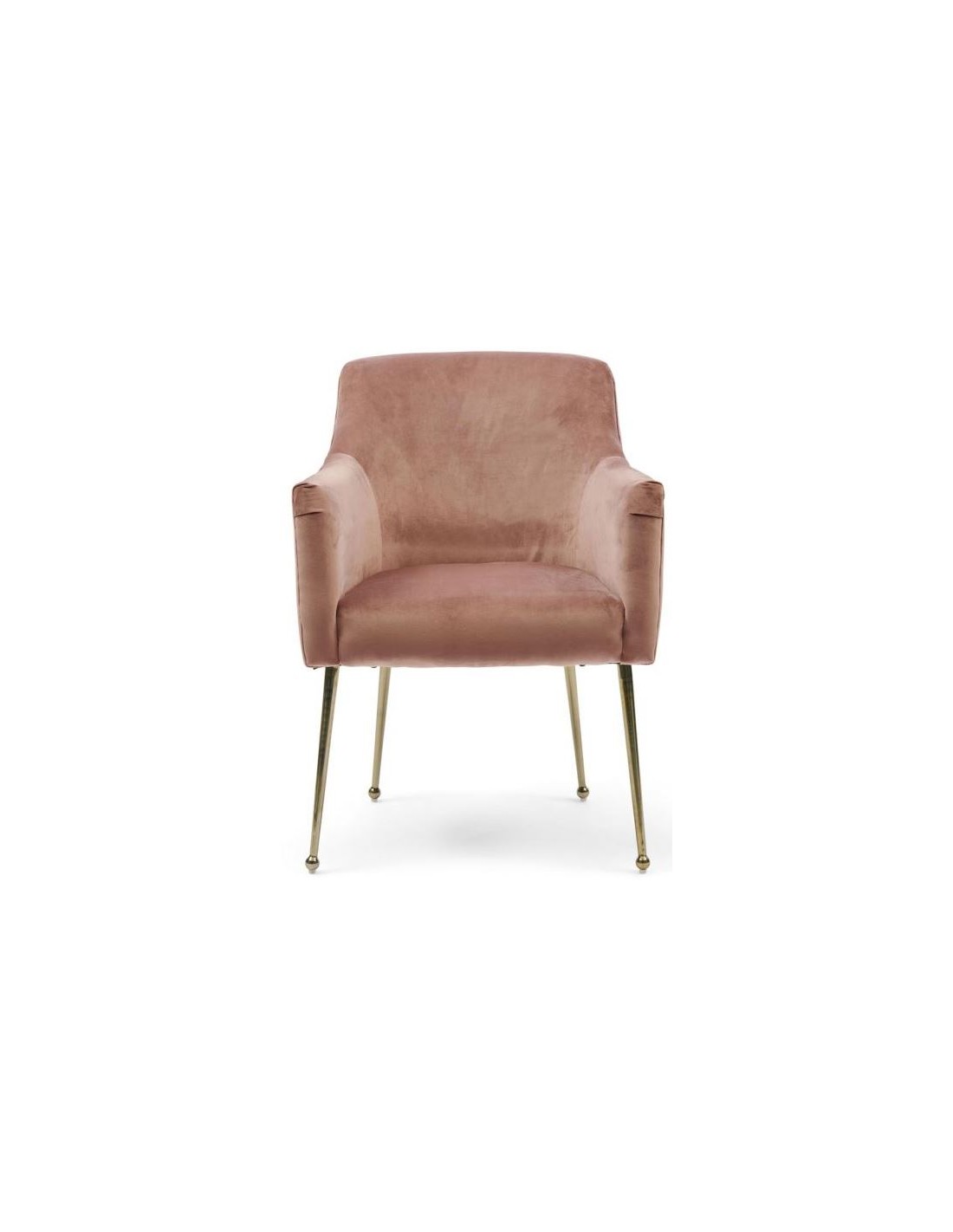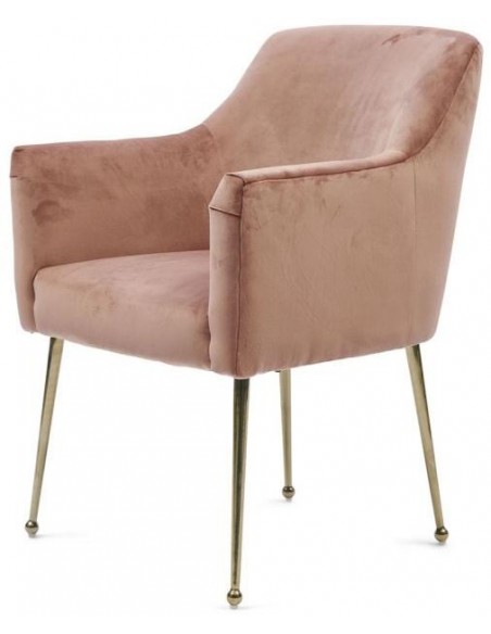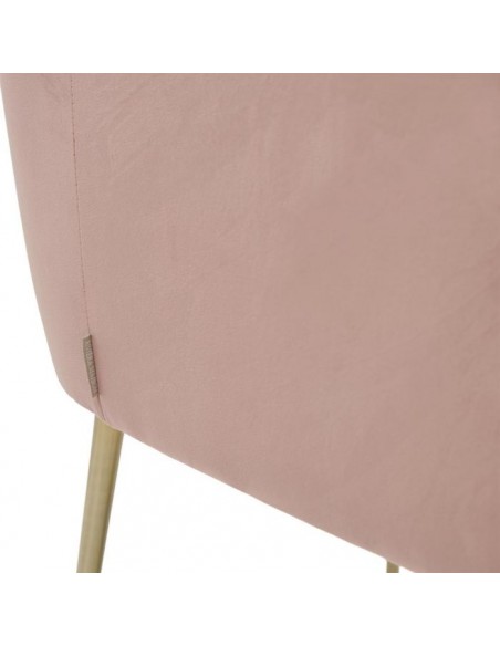 Riviera Maison spisebordsstol udført i et design af rosa velour og antik guldfarvet jern. Spisebordsstolen måler 84 cm i højden over ryggen og 66 x 66 cm i bredde og dybde. Siddehøjden er 48 cm.