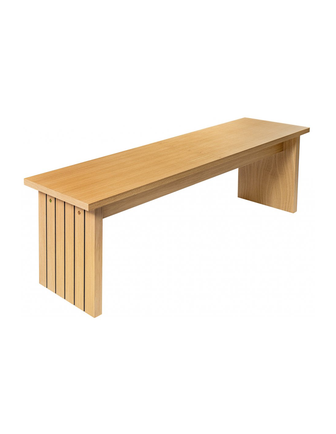 Bænk fra Woodman, udført i et moderne design af egetræsfinér. Bænken måler 150 x 39 cm i bredde og dybde og 45 cm i højden.