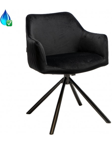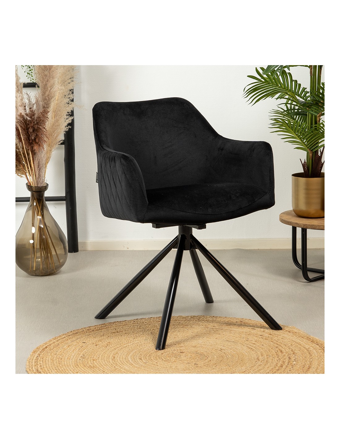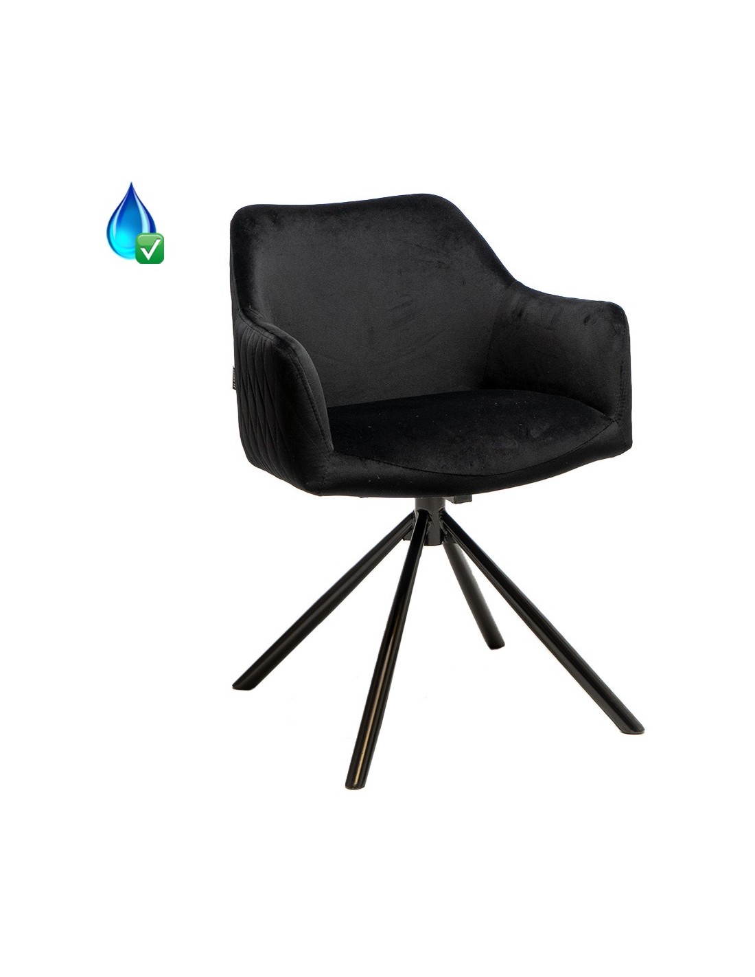 Furtado rotérbar spisebordsstol i et moderne design, fremstillet med sæde i sort velour og stel i sortlakeret metal. Stolen måler 80 cm i højden over ryggen og med siddehøjde på 46 cm. Betrækket er med martindale 70.000 og er vandafvisende, som gør stolen særligt anvendelig til restaurationer/spisesteder.