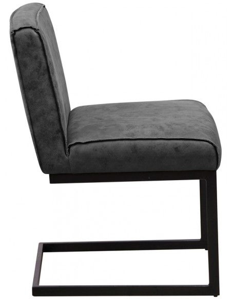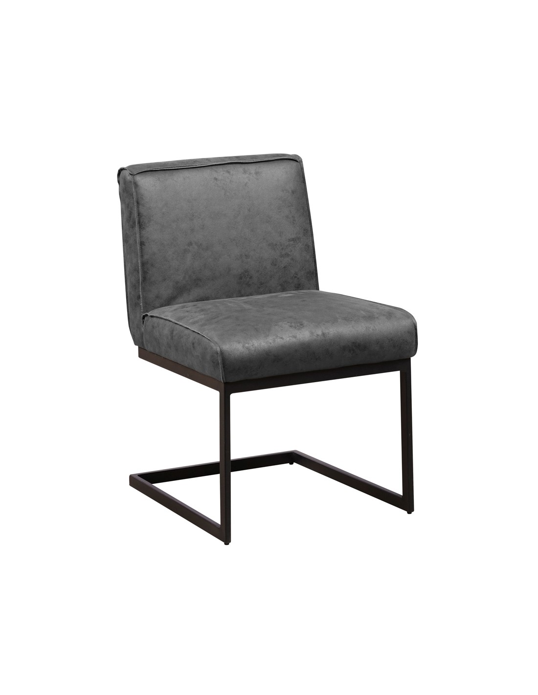 Spisebordsstol i et industrielt design, fremstillet med sæde i antracitfarvet mikrofiber og stel i sortlakeret metal. Stolen måler 81 cm i højden over ryggen og med siddehøjde på 49 cm.