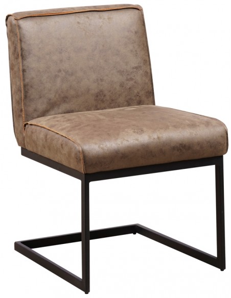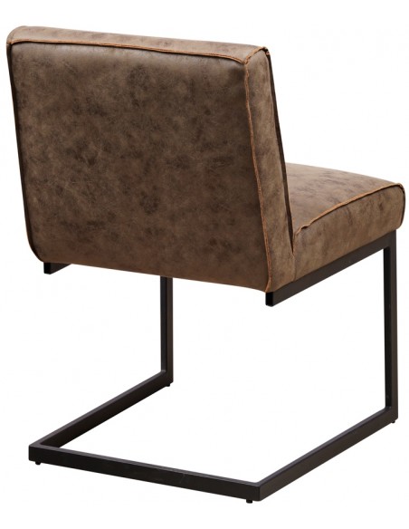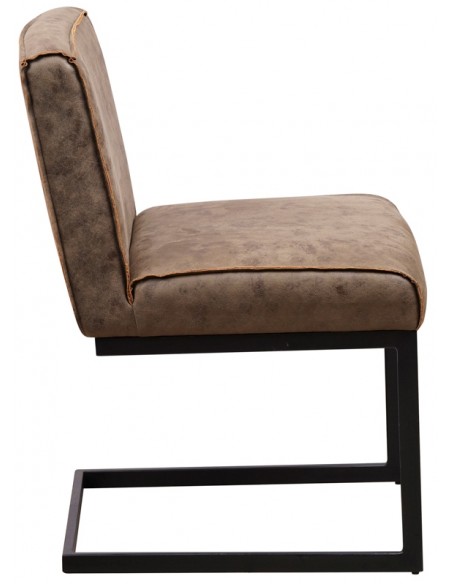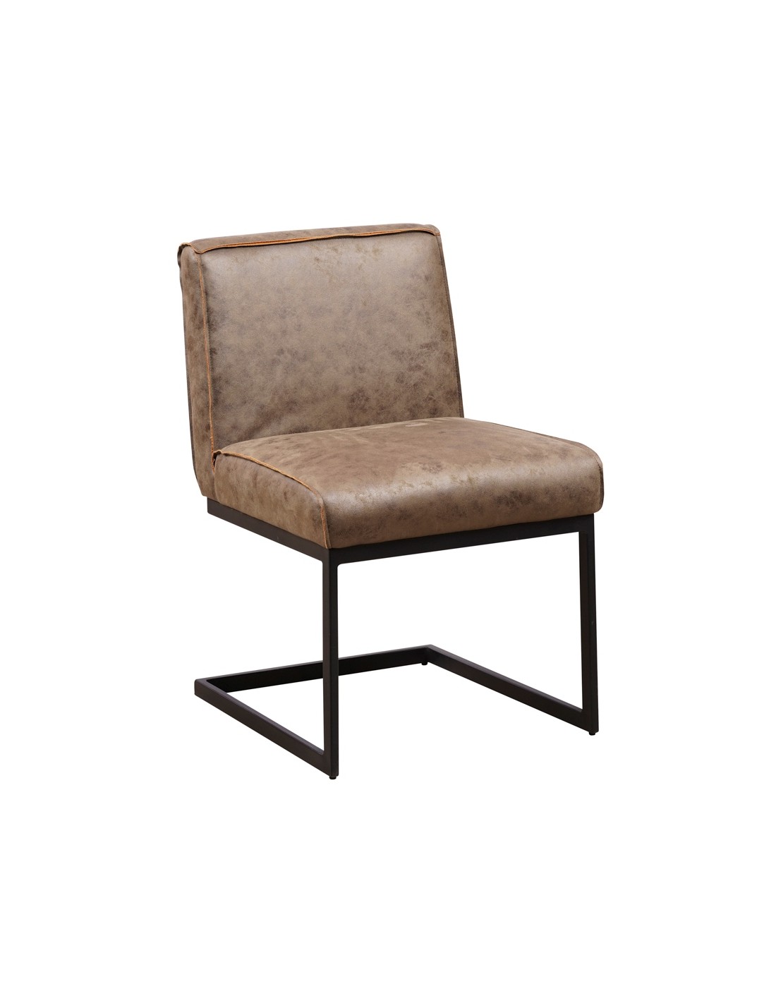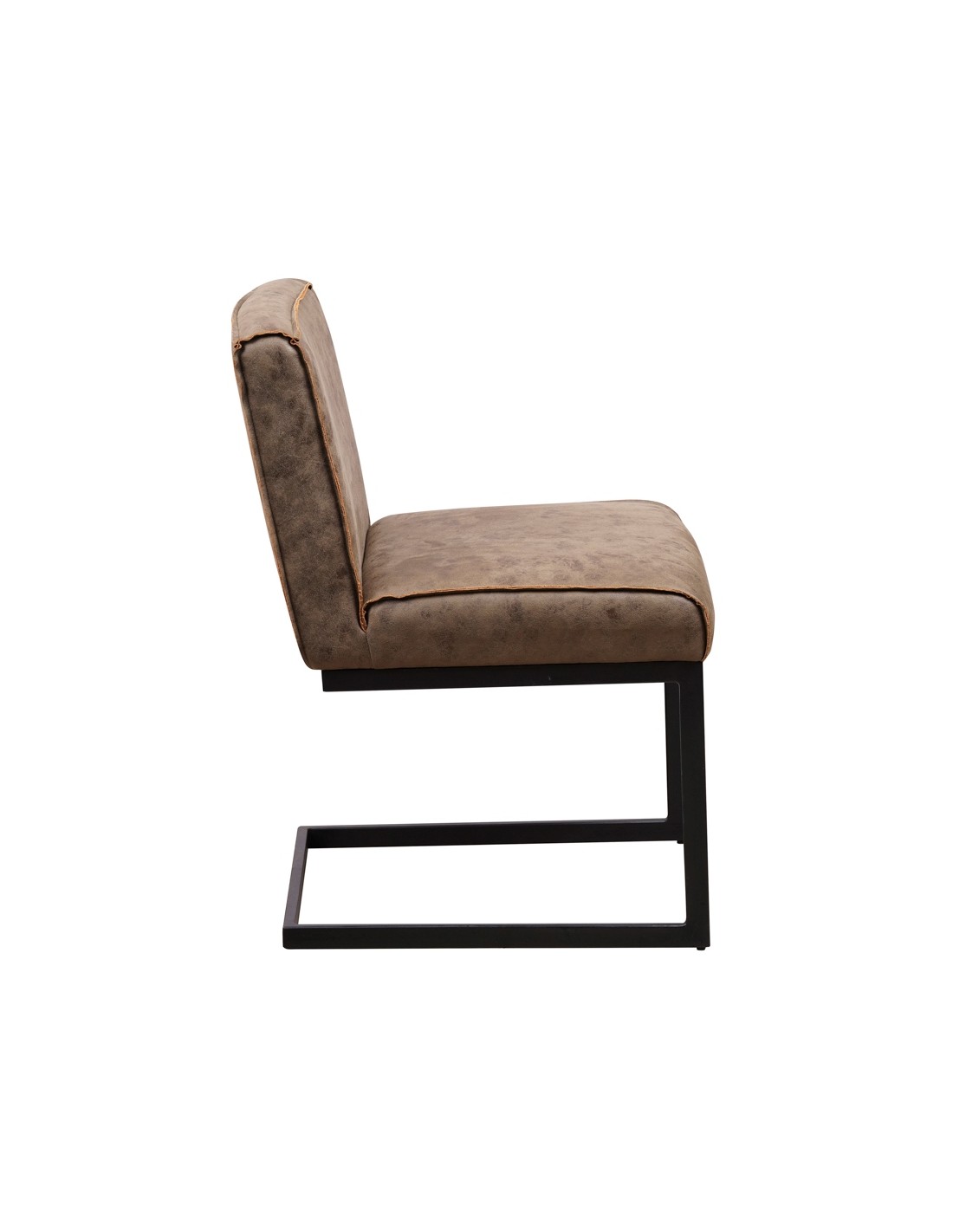 Spisebordsstol i et industrielt design, fremstillet med sæde i brunt mikrofiber og stel i sortlakeret metal. Stolen måler 81 cm i højden over ryggen og med siddehøjde på 49 cm.
