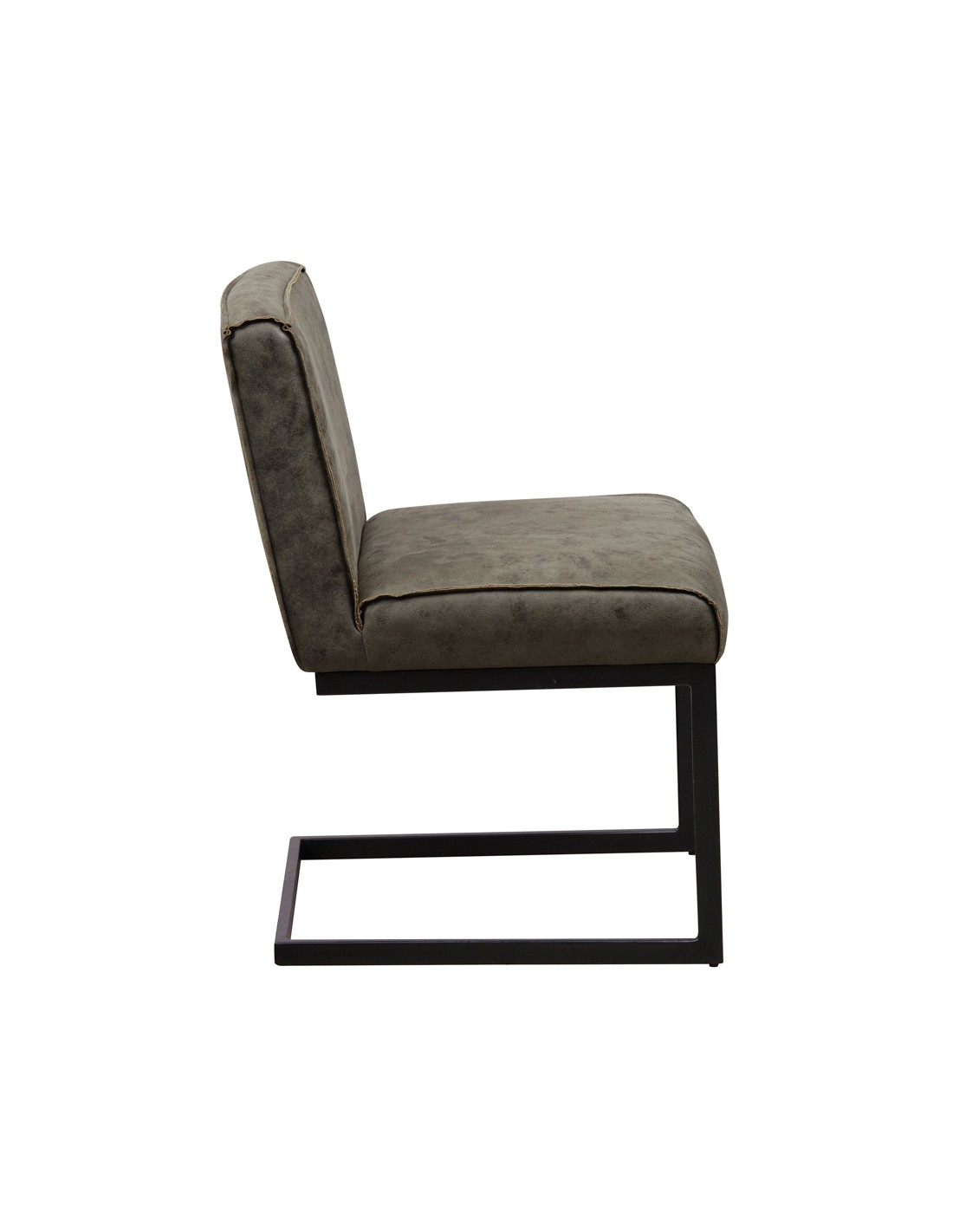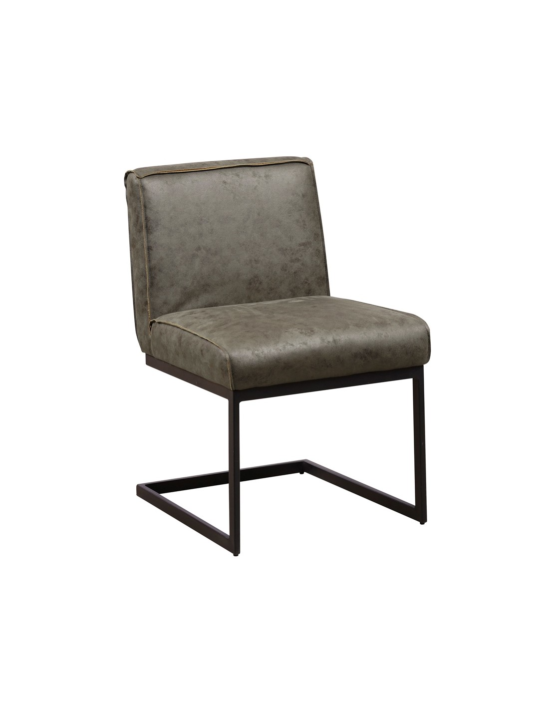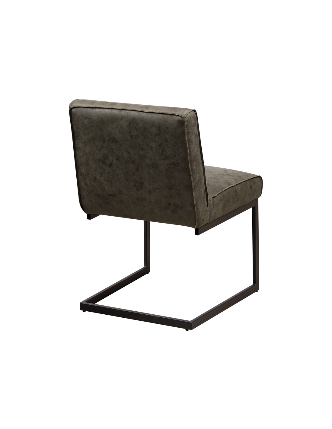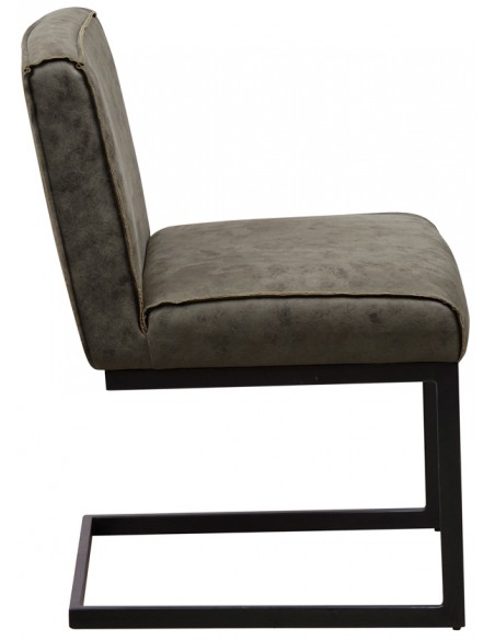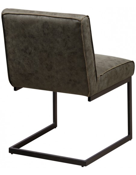 Spisebordsstol i et industrielt design, fremstillet med sæde i grønt mikrofiber og stel i sortlakeret metal. Stolen måler 81 cm i højden over ryggen og med siddehøjde på 49 cm.