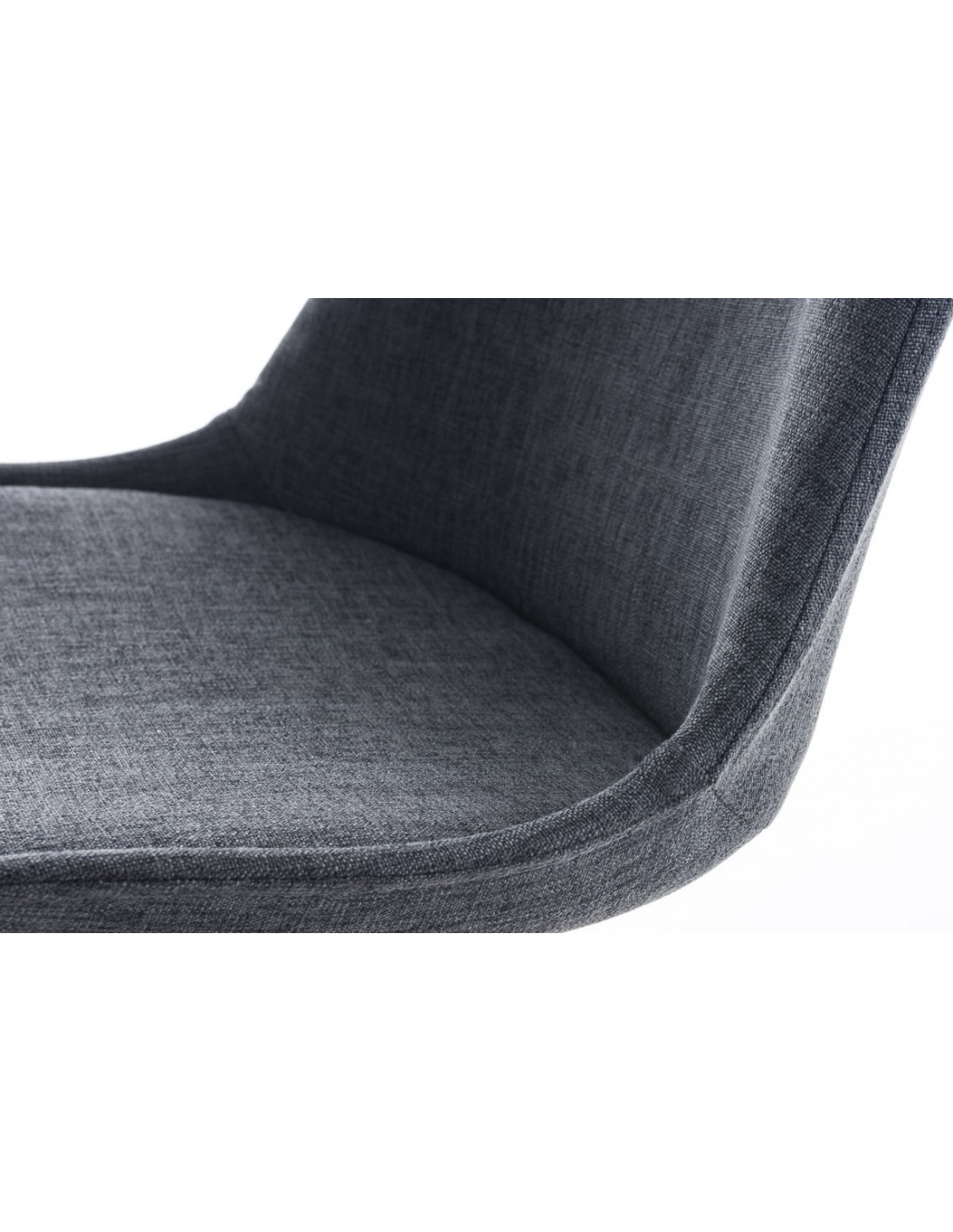 Spisebordsstol udført i et komfortabelt design, fremstillet med sæde i polstret mørkegrå polyester og ben i sortlakeret træ. Spisebordsstolen måler 84 cm i højden over ryggen og med en siddehøjde på 46 cm.