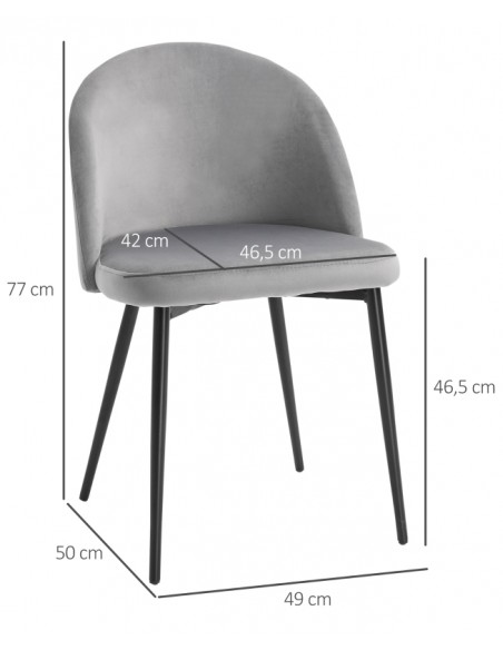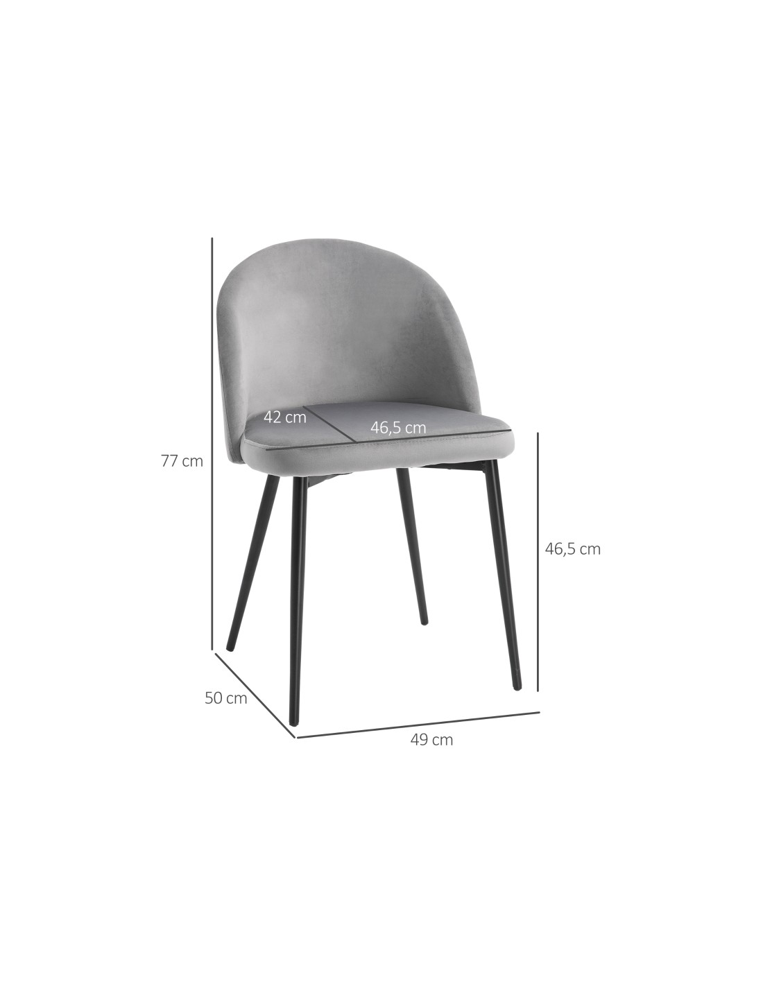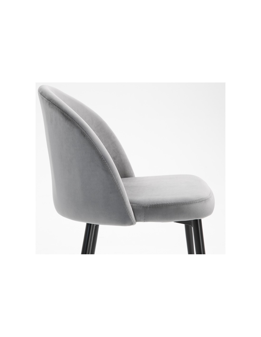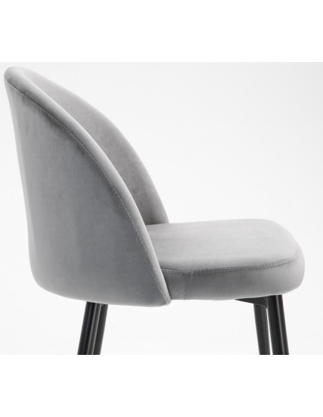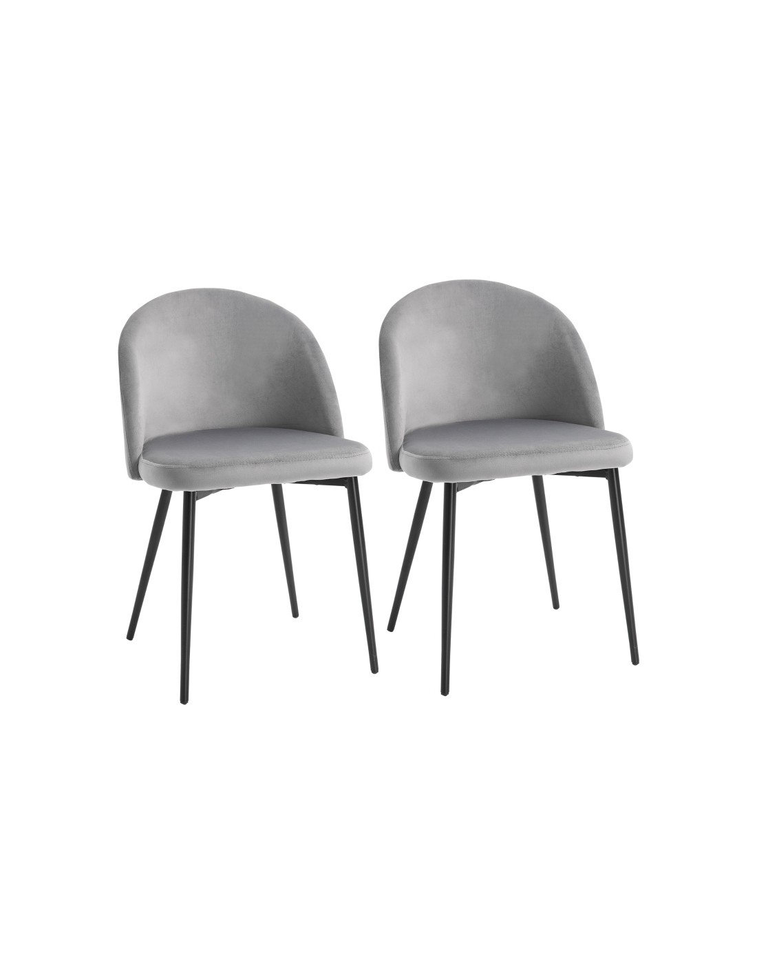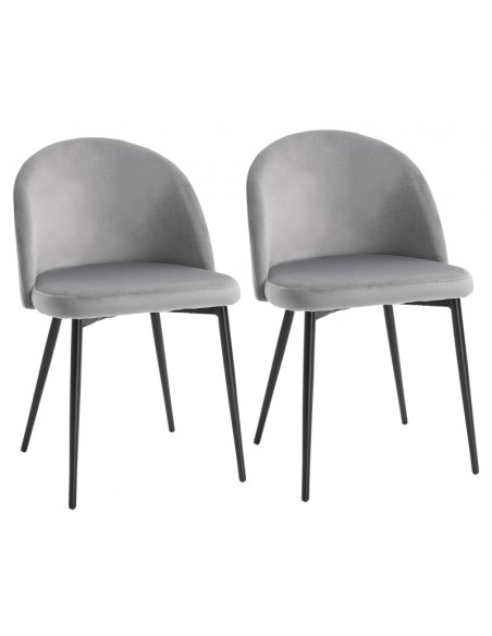 Sæt med 2 spisebordsstole udført i et design af sortlakeret metal og grå velour. Spisebordsstolene måler 77 cm i højden over ryggen og med en siddehøjde på 46,5 cm. Stolenes bredde er 49 cm og dybde 50 cm.
