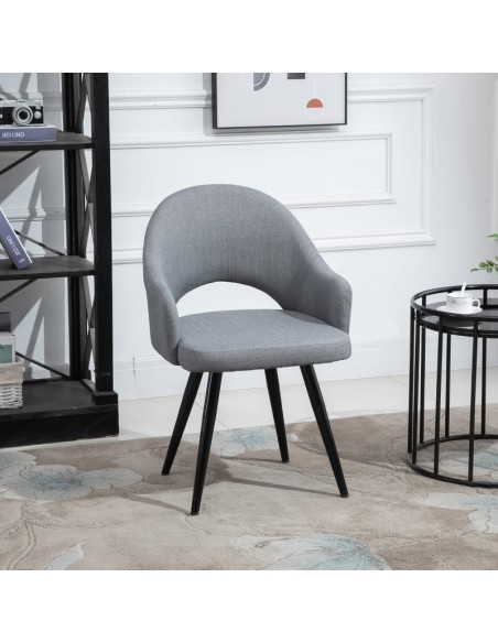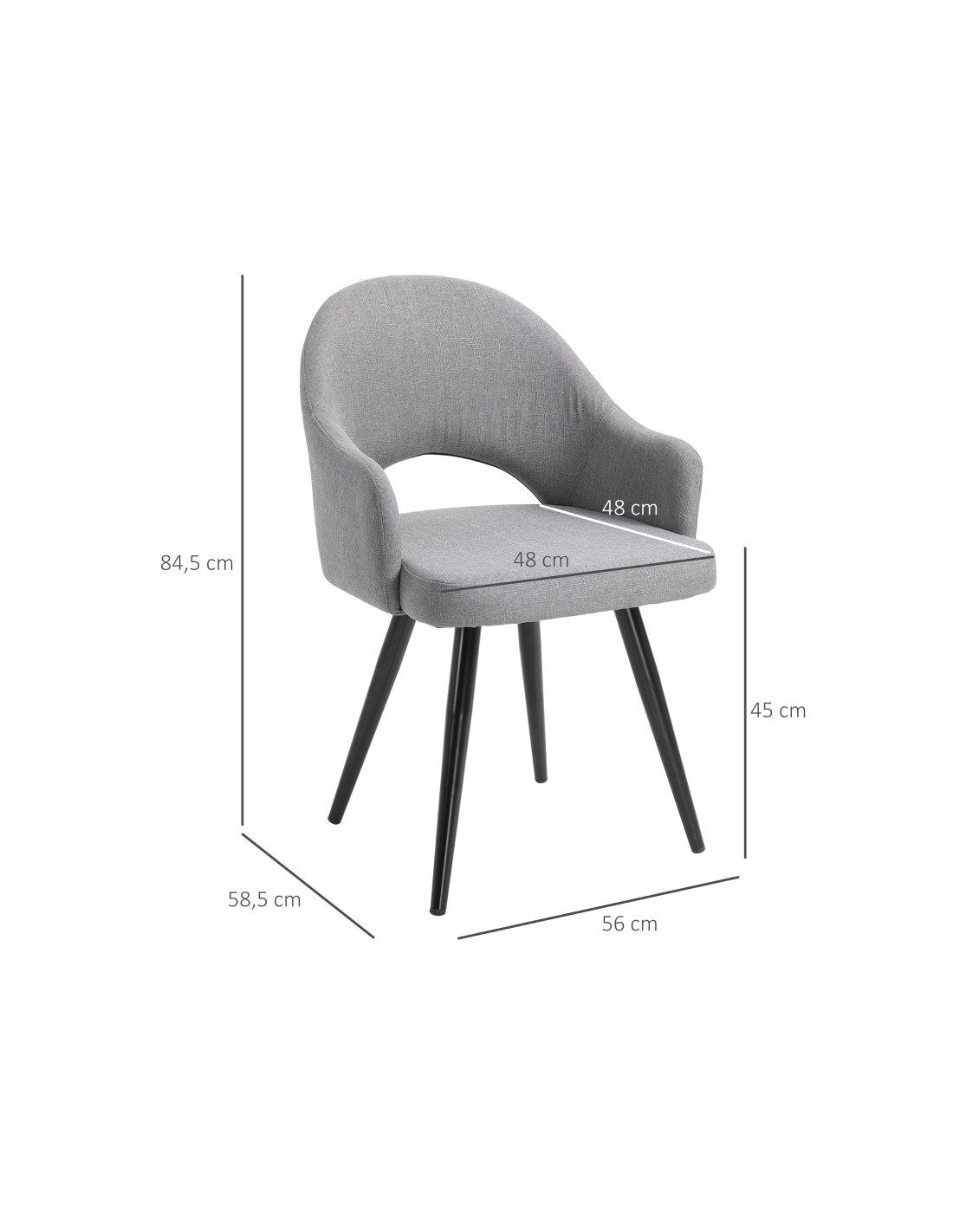 Spisebordsstol udført i et design af sortlakeret metal og grå polyester. Spisebordsstolen måler 84,5 cm i højden over ryggen og med en siddehøjde på 45 cm. Stolens bredde er 56 cm og dybde 58,5 cm.