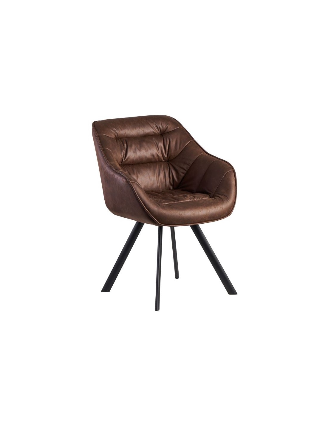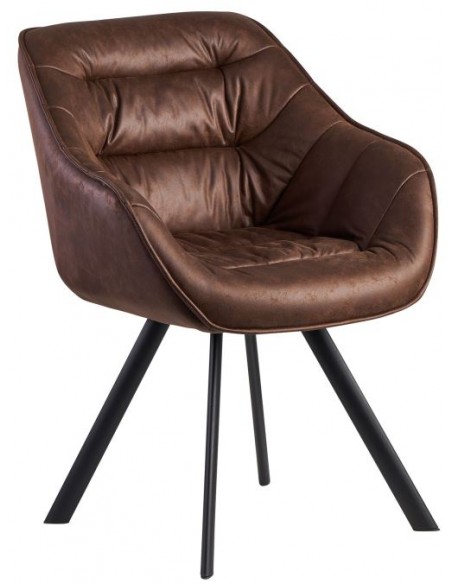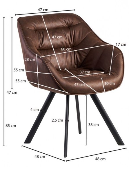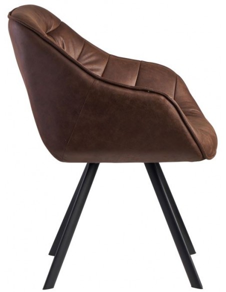 Spisebordsstol fremstillet i et design af sortlakeret metal og brun PU-læder. Spisebordsstolen måler 85 cm i højden over ryggen og med en siddehøjde på 48 cm.