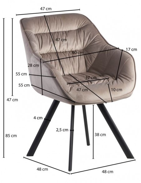 Spisebordsstol fremstillet i et design af sortlakeret metal og beige velour. Spisebordsstolen måler 85 cm i højden over ryggen og med en siddehøjde på 48 cm.