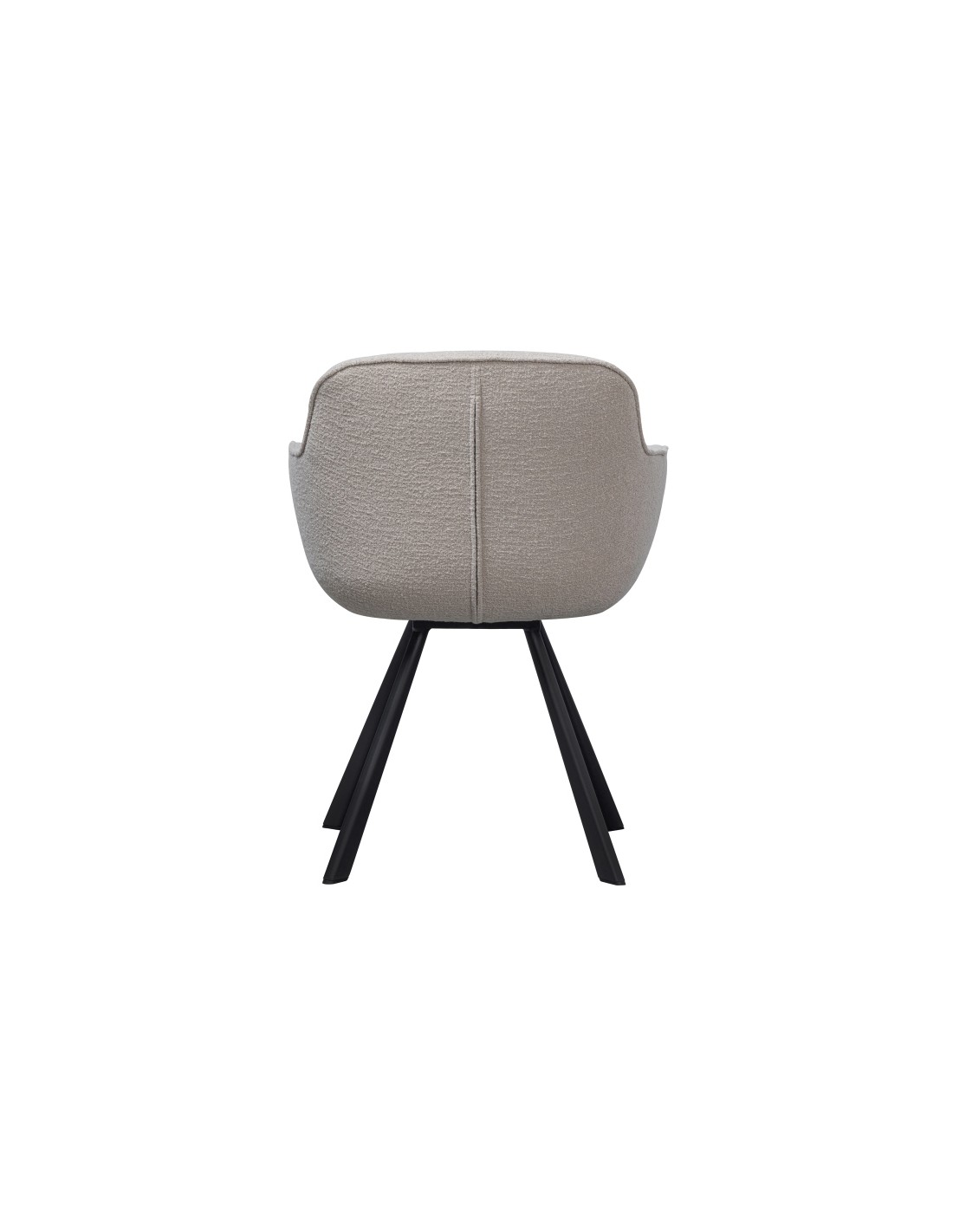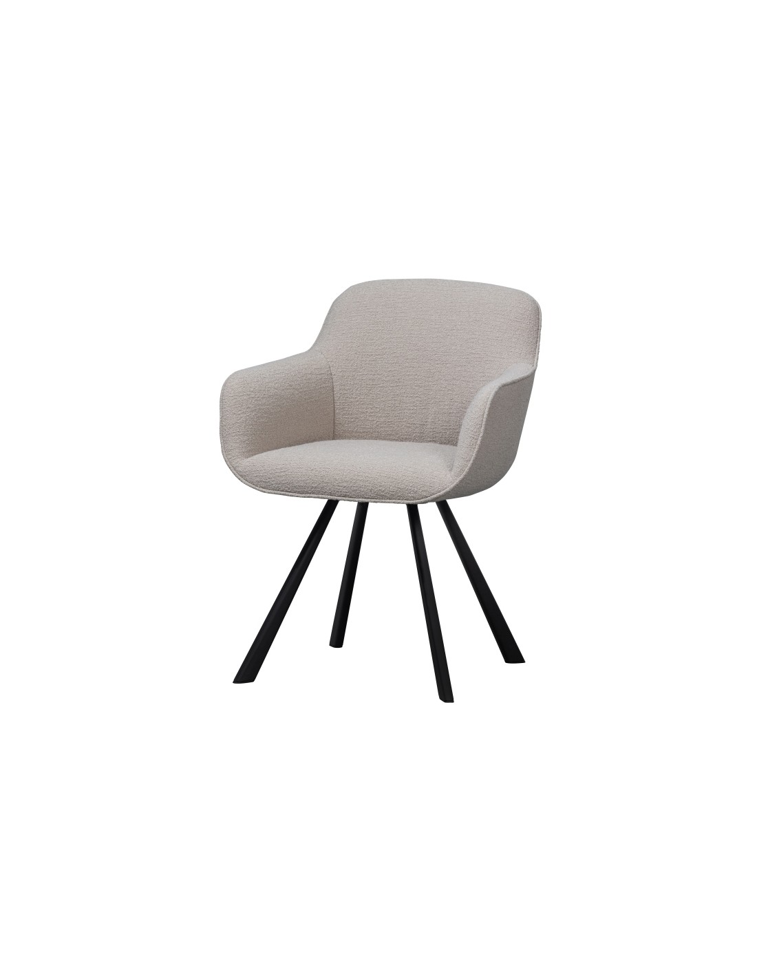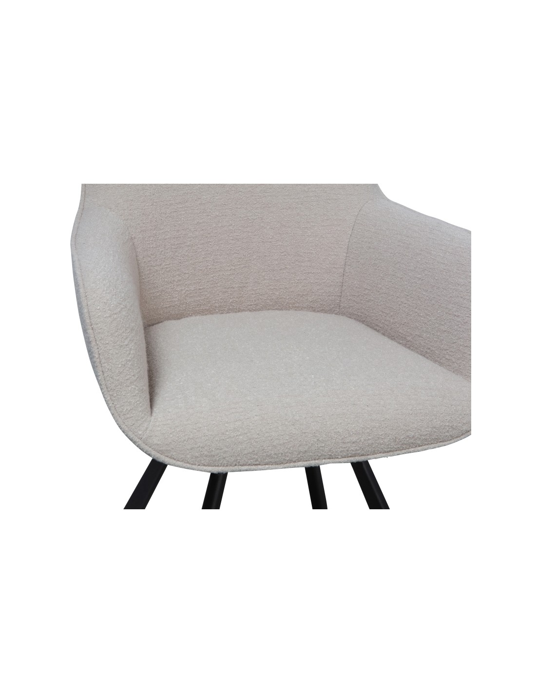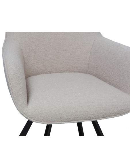 Spisebordsstol i et moderne design, fremstillet i sandfarvet boucle polyester og med ben i sortlakeret metal. Stolen måler 79 cm i højden og 58 x 58 cm i bredde og dybde. Siddehøjden er 49 cm.