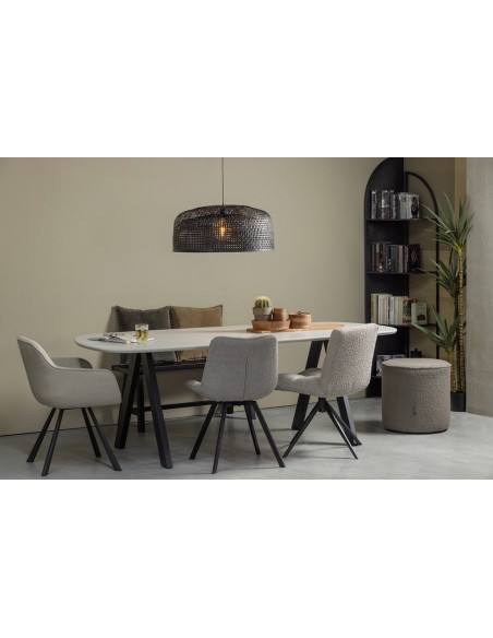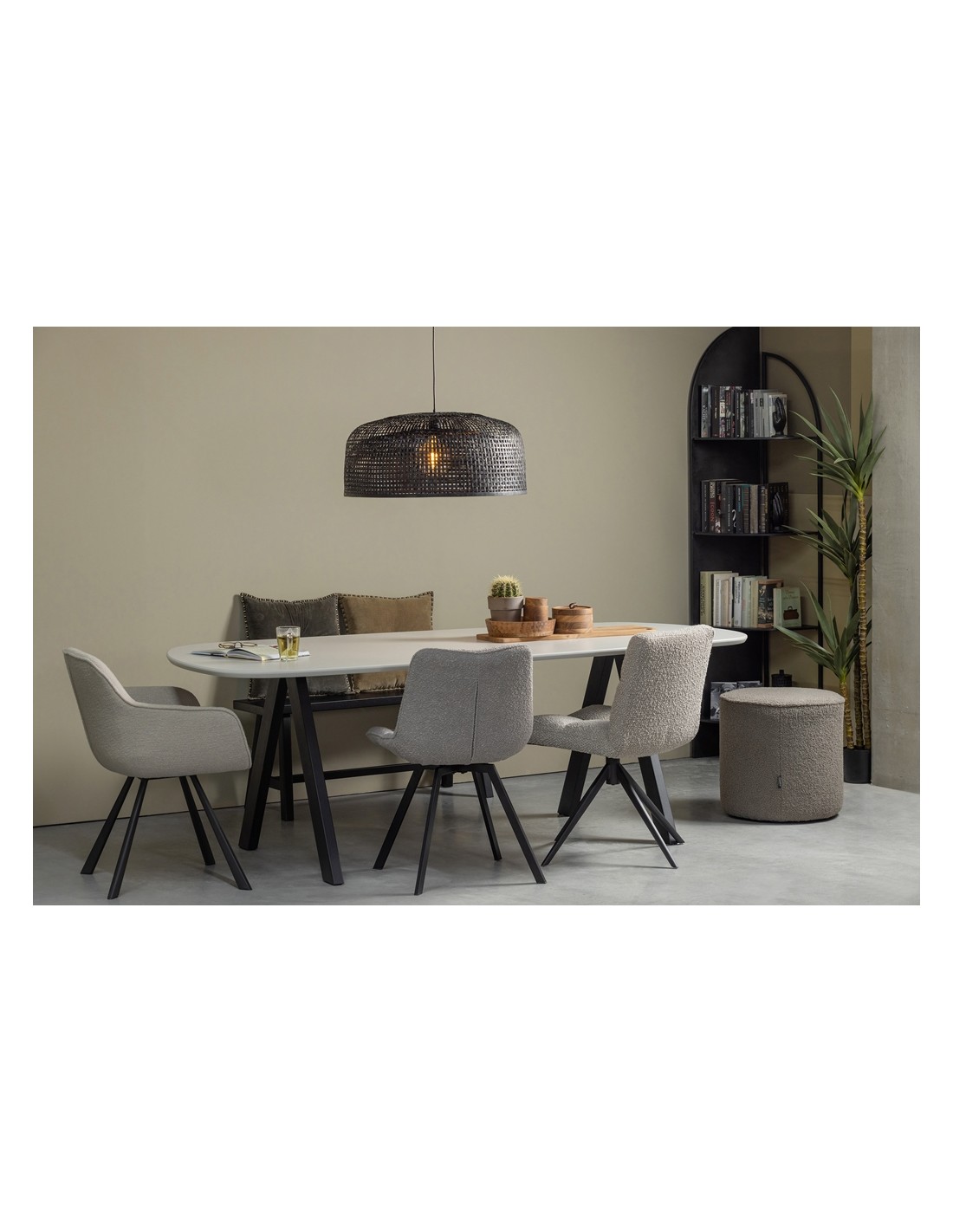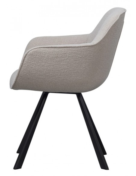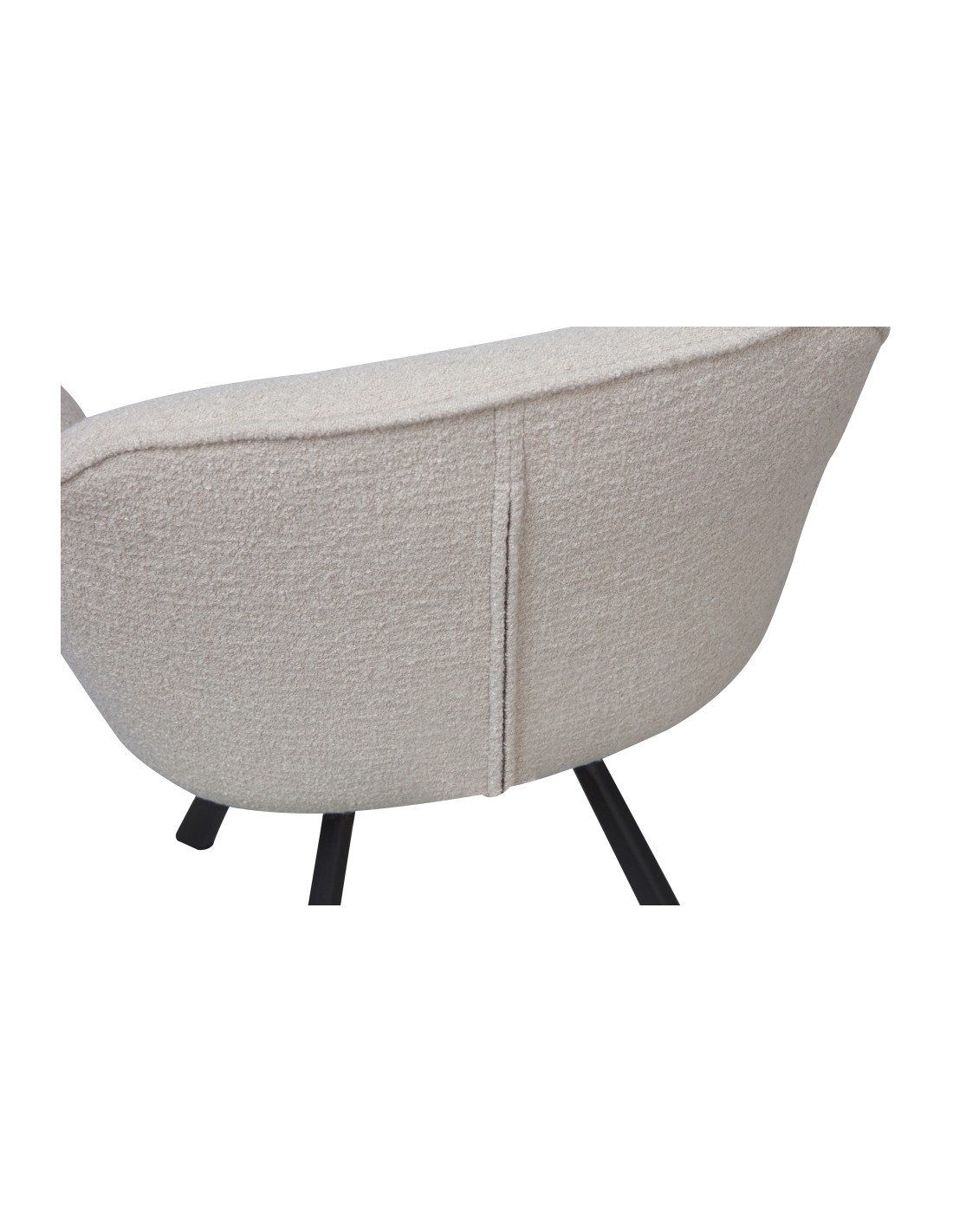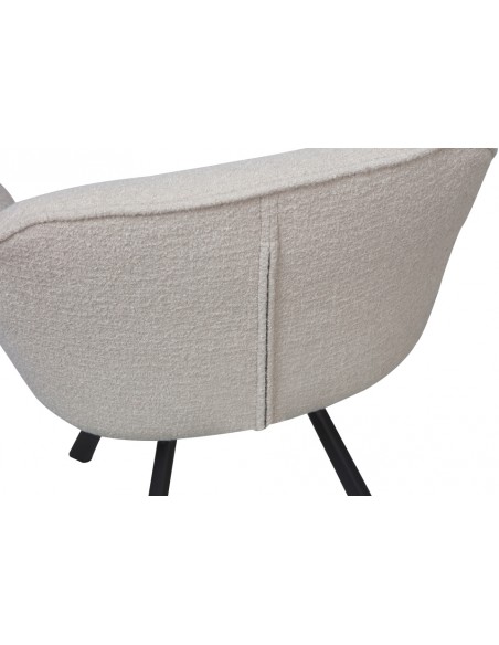 Spisebordsstol i et moderne design, fremstillet i sandfarvet boucle polyester og med ben i sortlakeret metal. Stolen måler 79 cm i højden og 58 x 58 cm i bredde og dybde. Siddehøjden er 49 cm.