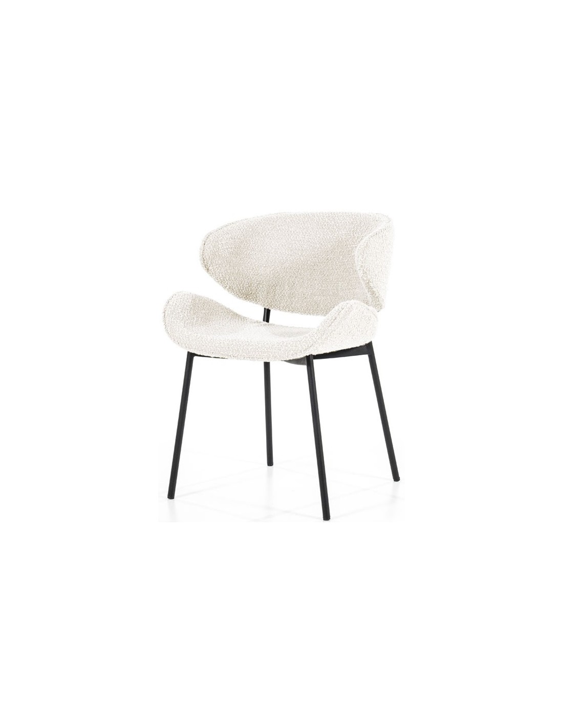 Spisebordsstol fremstillet i et design af metal og bouclé polyester. En komfortabel spisebordsstol der vil passe ind i både den moderne, såvel som i den klassiske indretning. Stolen måler 72 cm i højde over ryggen og 46 cm i siddehøjde.
