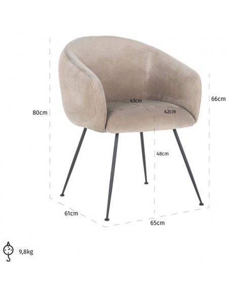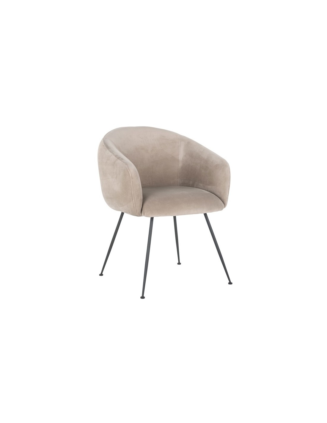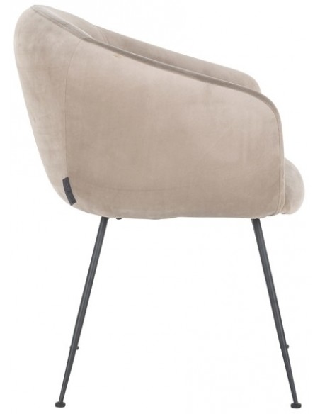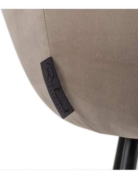 Spisebordsstol i et design fra hollandske Richmond Interiors. Stolen er fremstillet i sortlakeret metal og khakifarvet velour. Stolen måler 80 cm i højden over ryggen og med en siddehøjde på 48 cm.