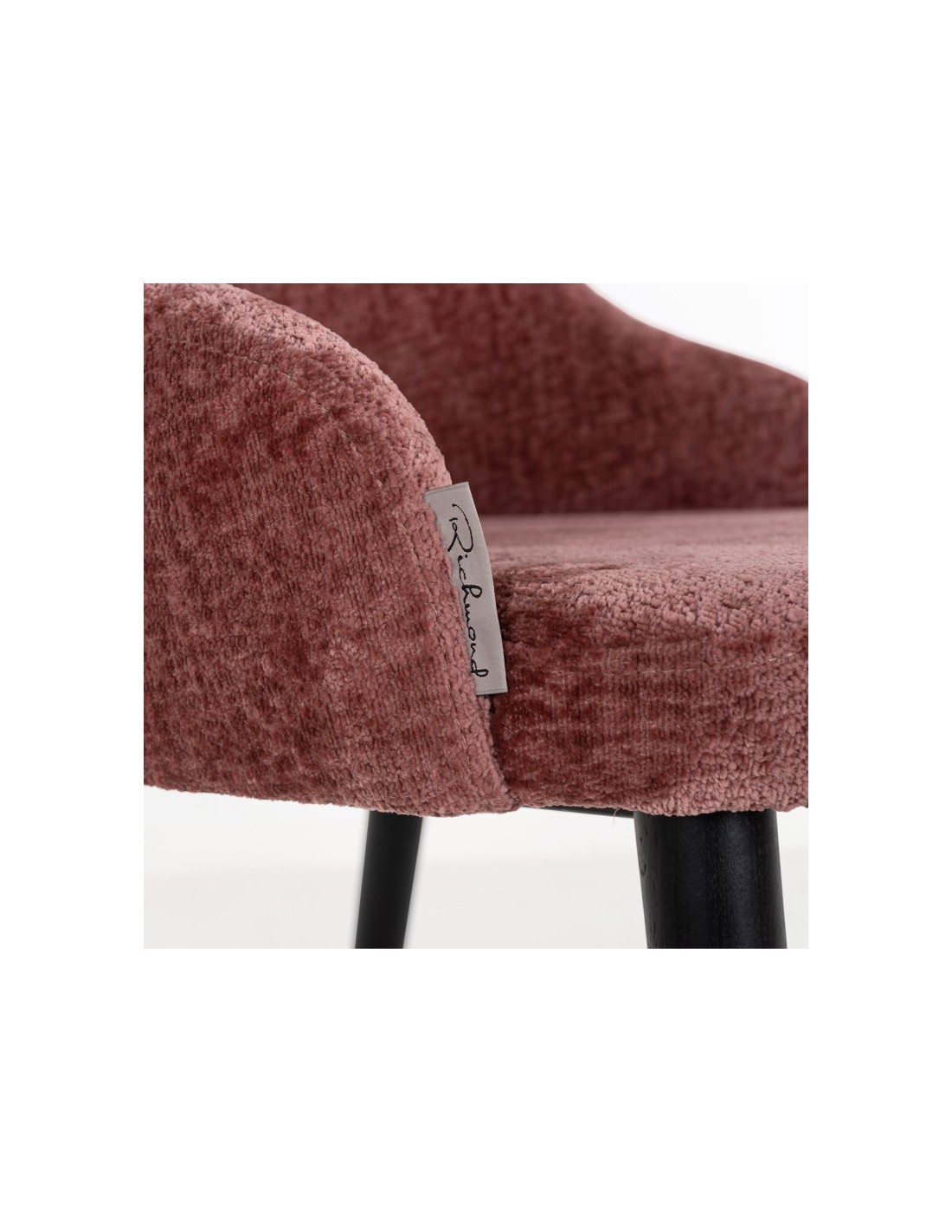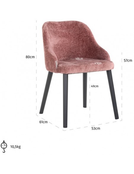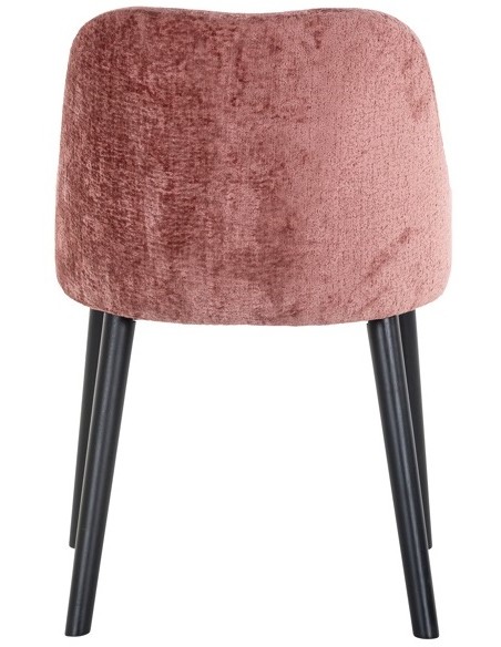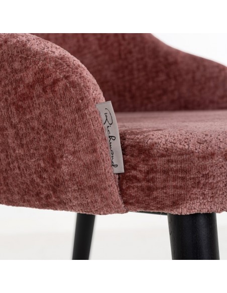 Spisebordsstol i et design fra hollandske Richmond Interiors. Stolen er fremstillet i sortlakeret træ og rosa chenille polyester. Stolen måler 80 cm i højden over ryggen og med en siddehøjde på 49 cm.