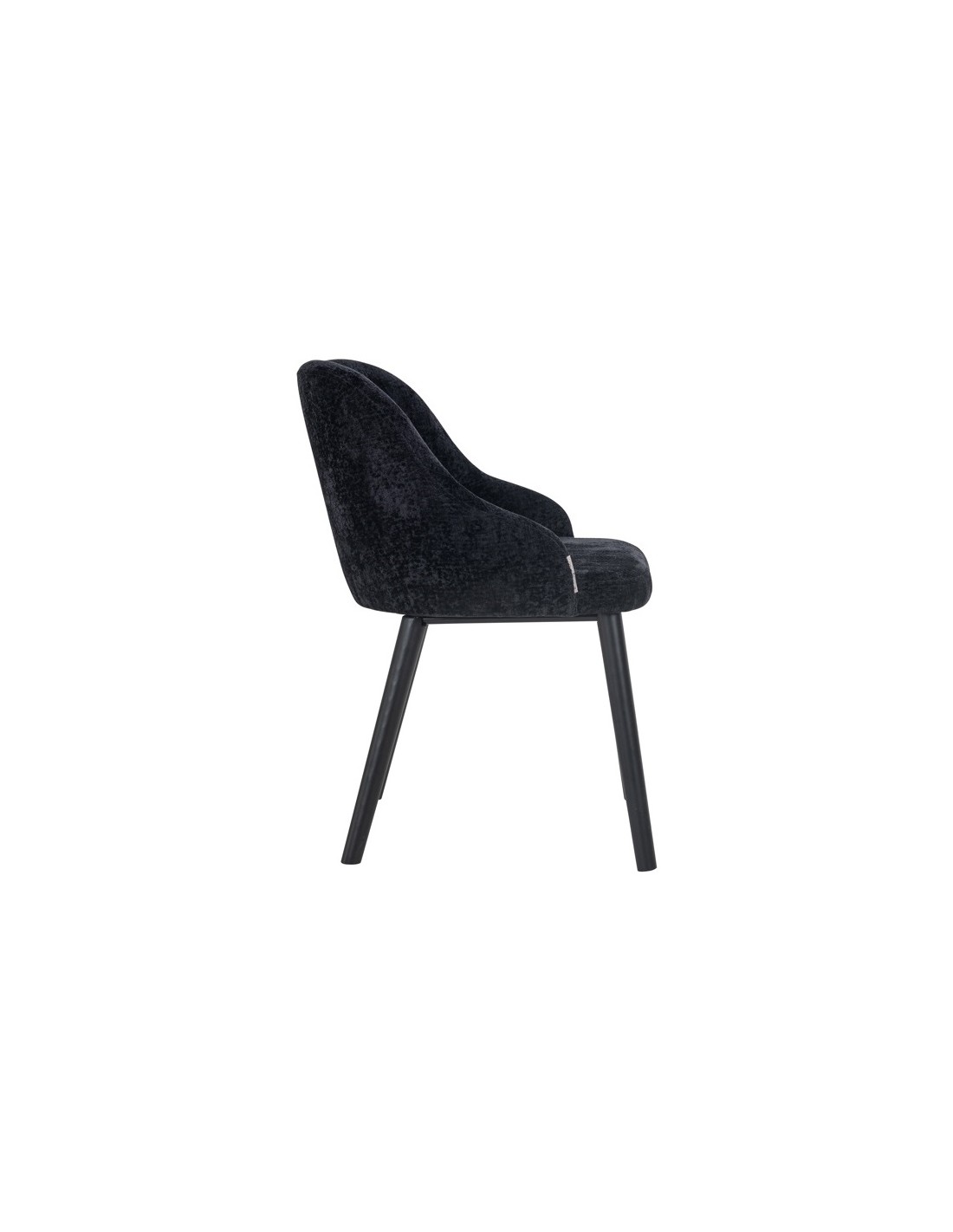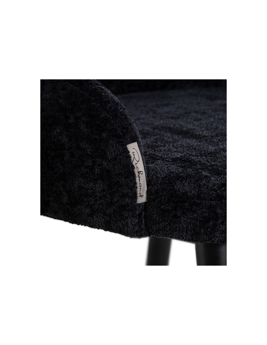 Spisebordsstol i et design fra hollandske Richmond Interiors. Stolen er fremstillet i sortlakeret træ og sort chenille polyester. Stolen måler 80 cm i højden over ryggen og med en siddehøjde på 49 cm.