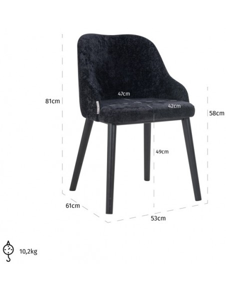Twiggy spisebordsstol i træ og chenille H80 cm - Sort/Sort