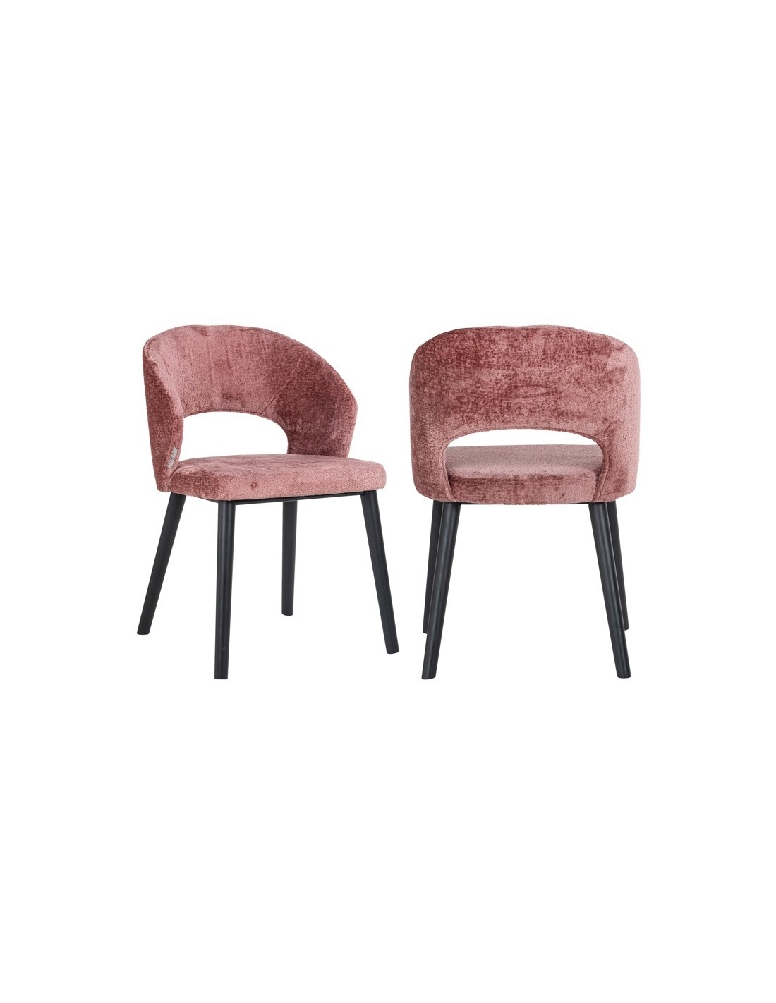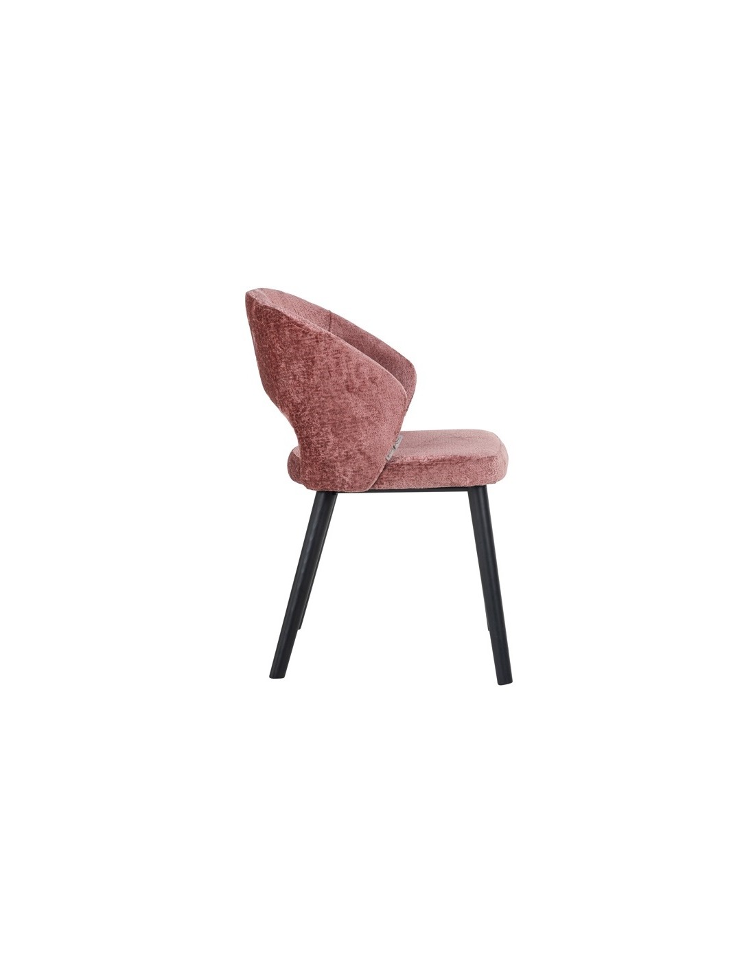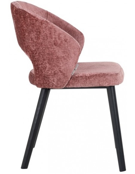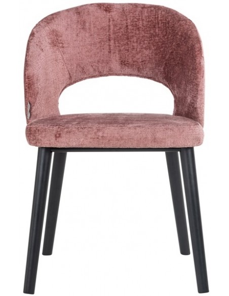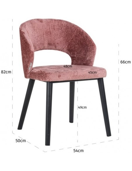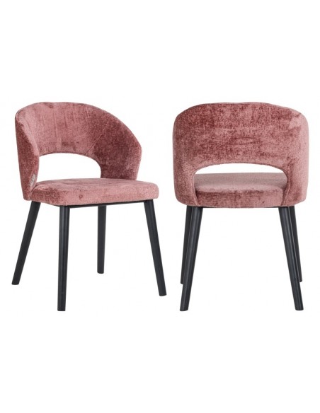 Spisebordsstol i et design fra hollandske Richmond Interiors. Stolen er fremstillet i sortlakeret træ og rosa chenille polyester. Stolen måler 82 cm i højden over ryggen og med en siddehøjde på 49 cm.