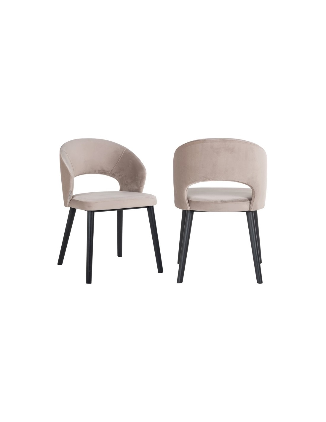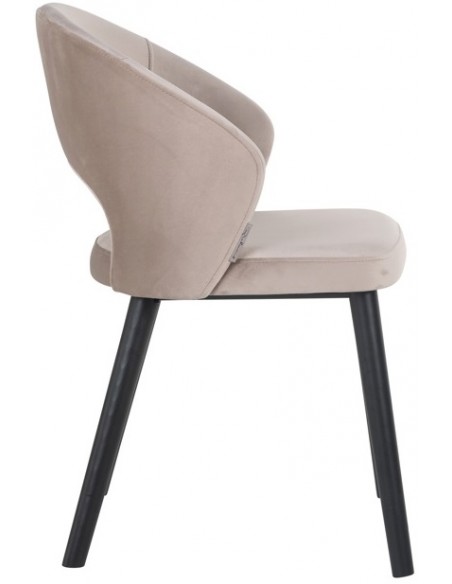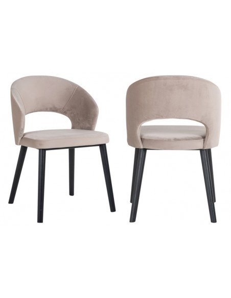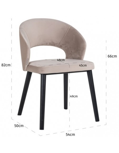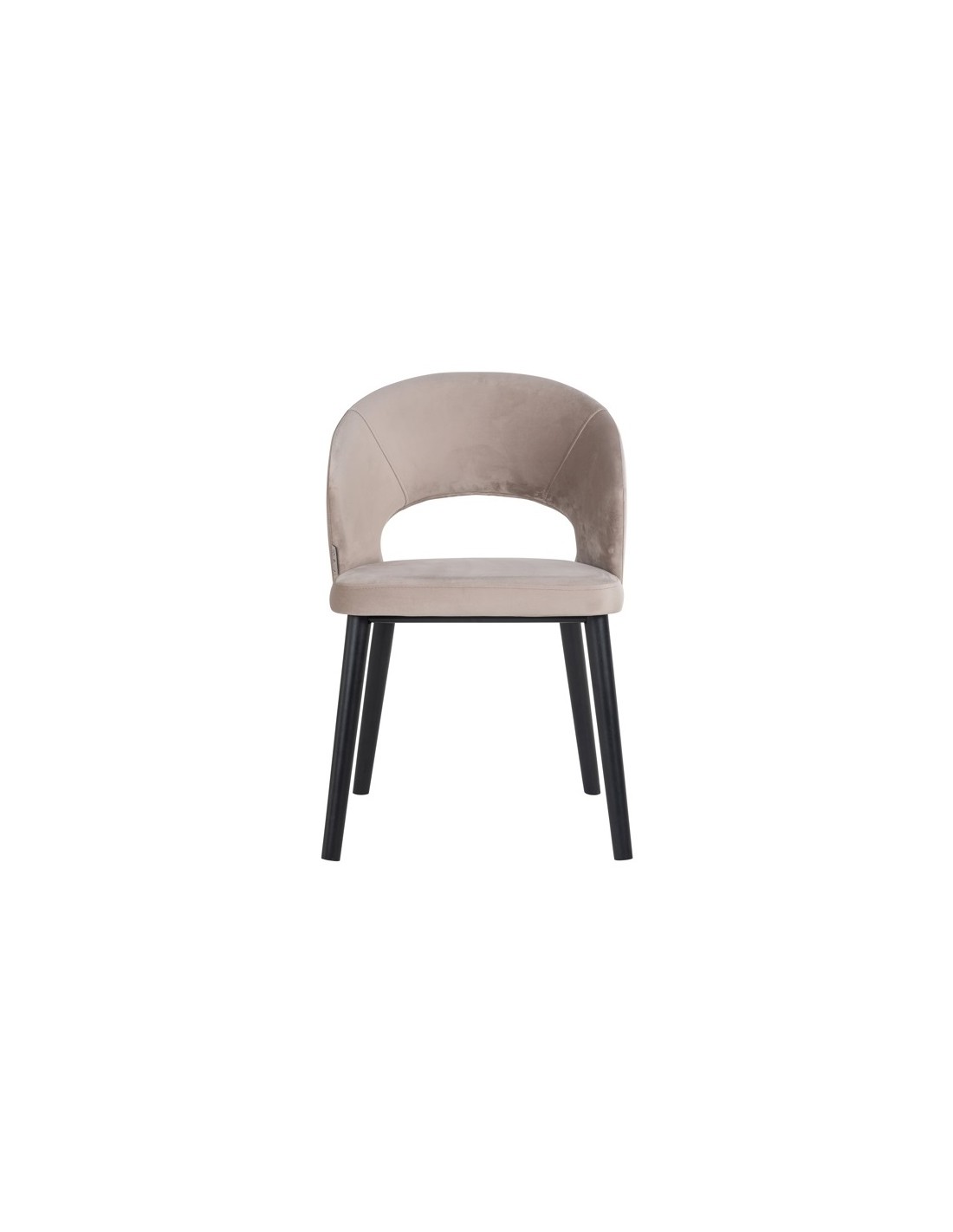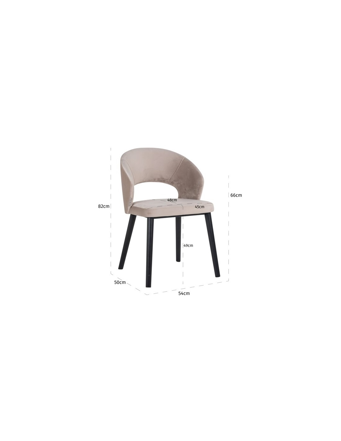 Spisebordsstol i et design fra hollandske Richmond Interiors. Stolen er fremstillet i sortlakeret træ og khakifarvet velour. Stolen måler 82 cm i højden over ryggen og med en siddehøjde på 49 cm.