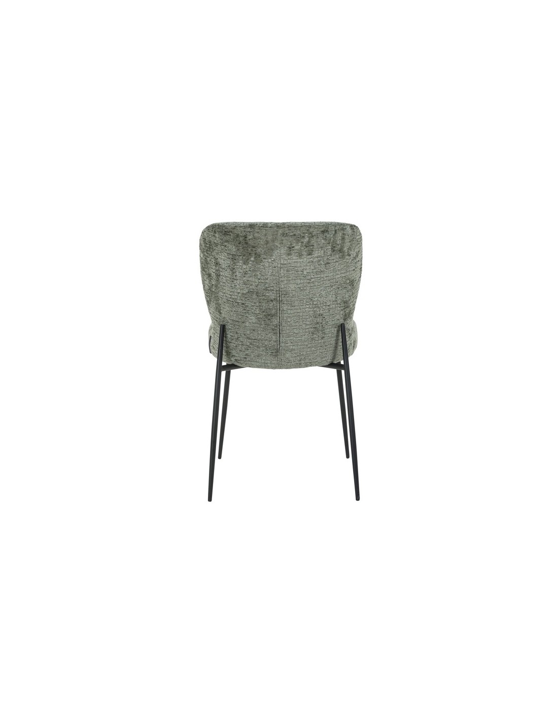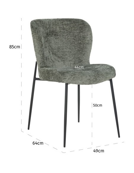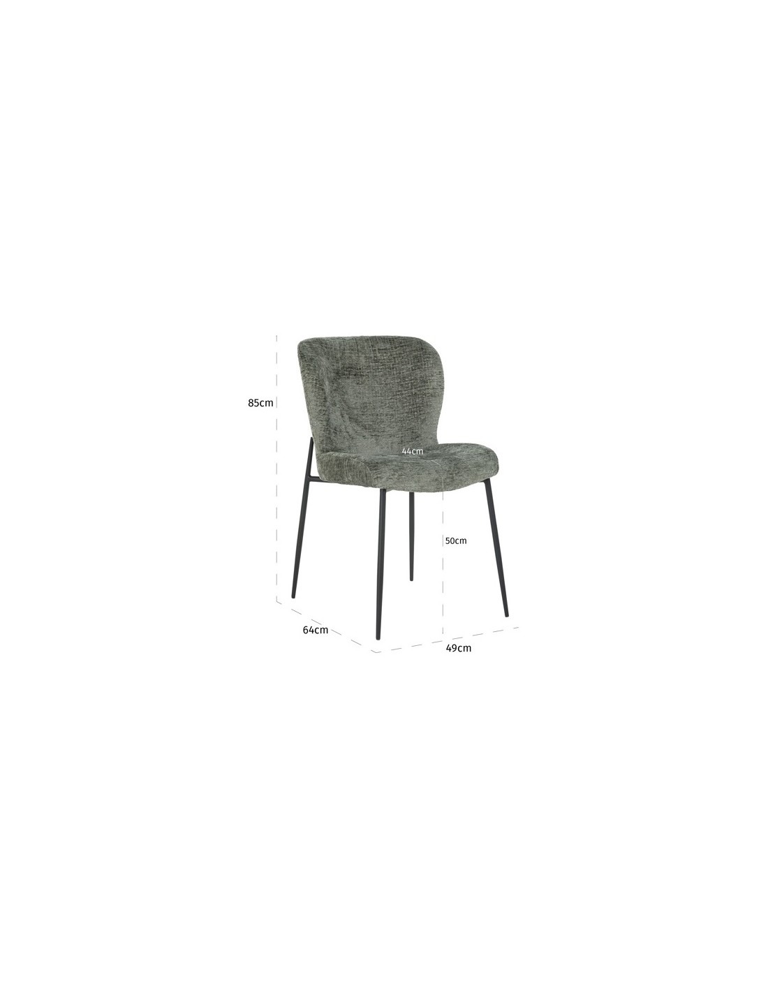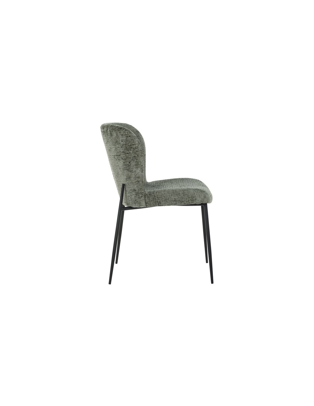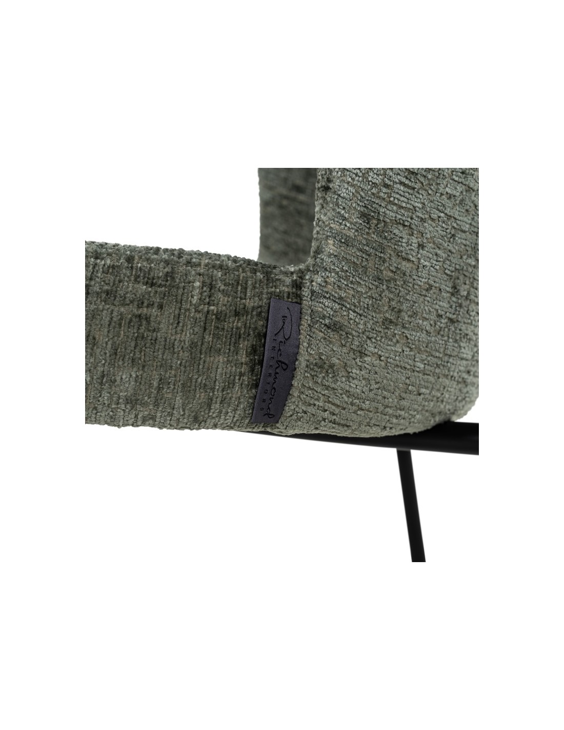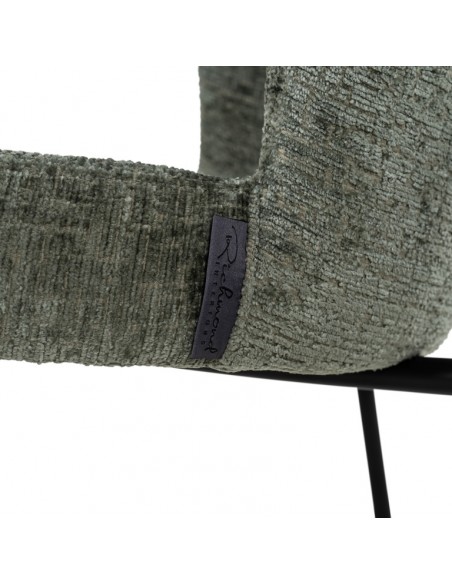 Spisebordsstol i et design fra hollandske Richmond Interiors. Stolen er fremstillet i grågrøn polyester og med ben i sortlakeret stål. Stolen måler 85 cm i højden over ryggen og 49 x 64 cm i bredde og dybde.