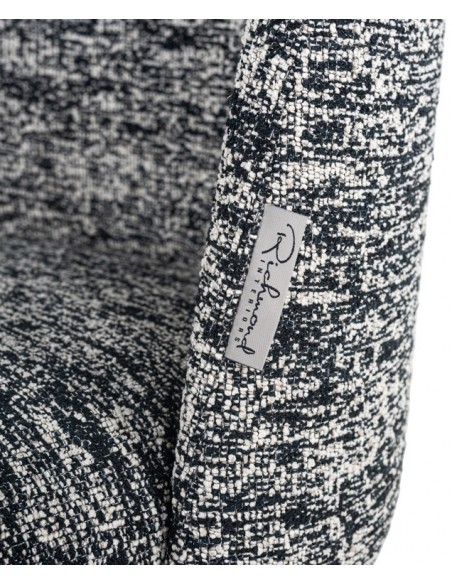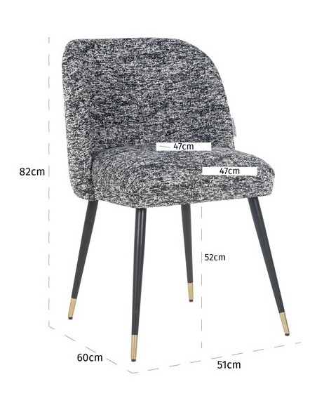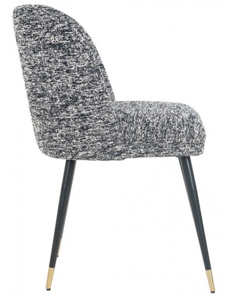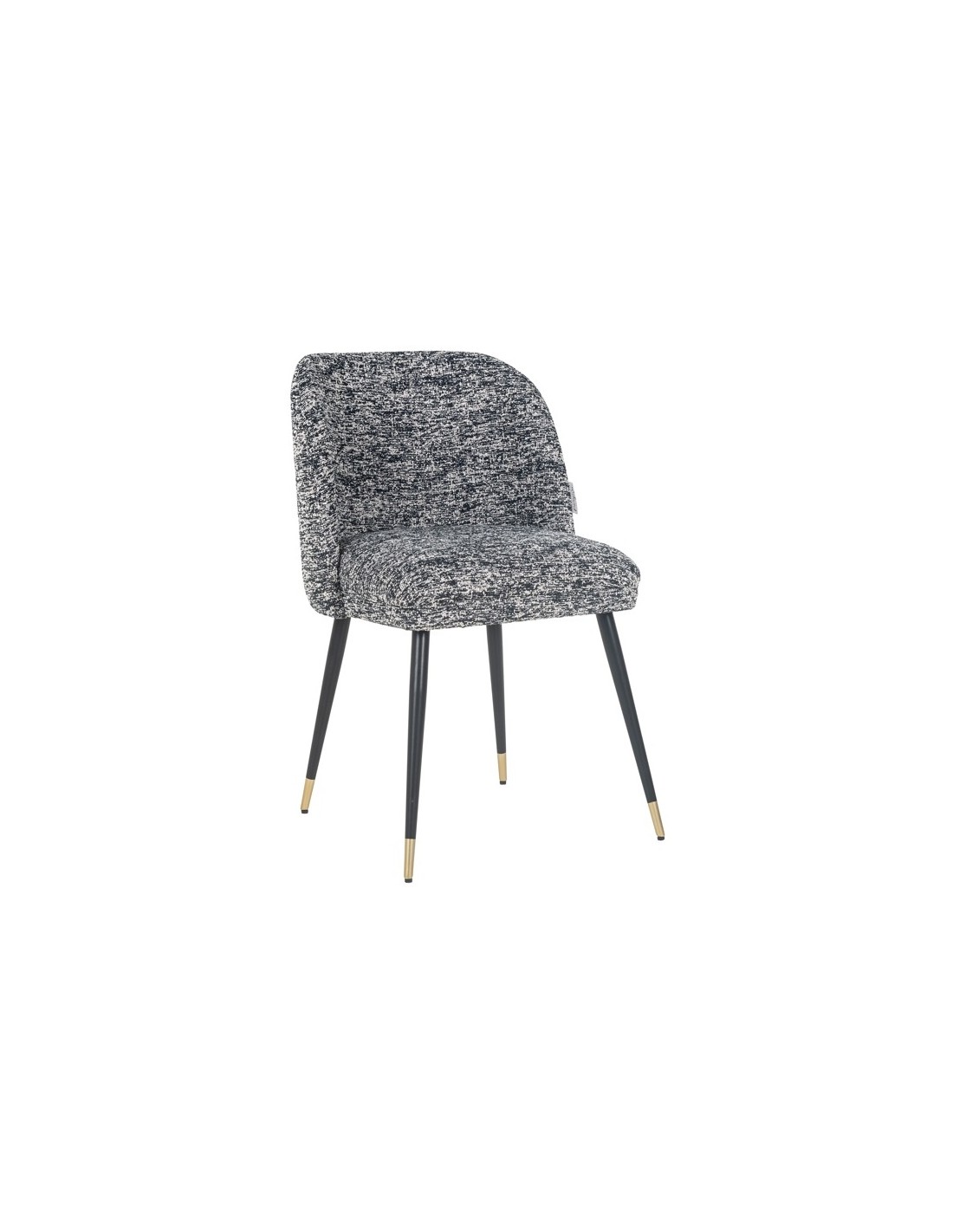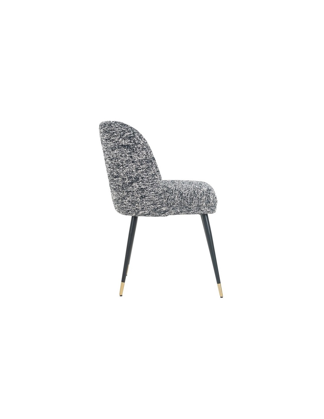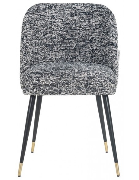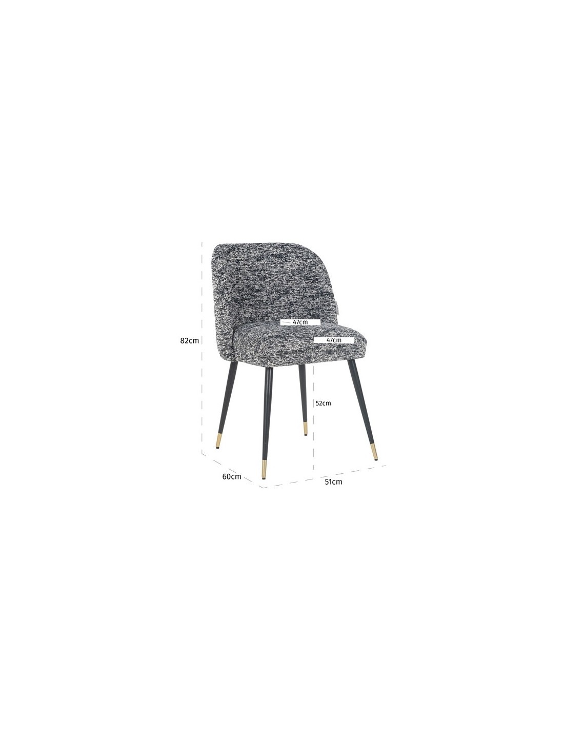 Spisebordsstol i et design fra hollandske Richmond Interiors. Stolen er fremstillet i sort og hvid meleret polyester og med ben i sortlakeret træ med detaljer i børstet messingfarvet metal. Stolen måler 82 cm i højden over ryggen og 51 x 60 cm i bredde og dybde.