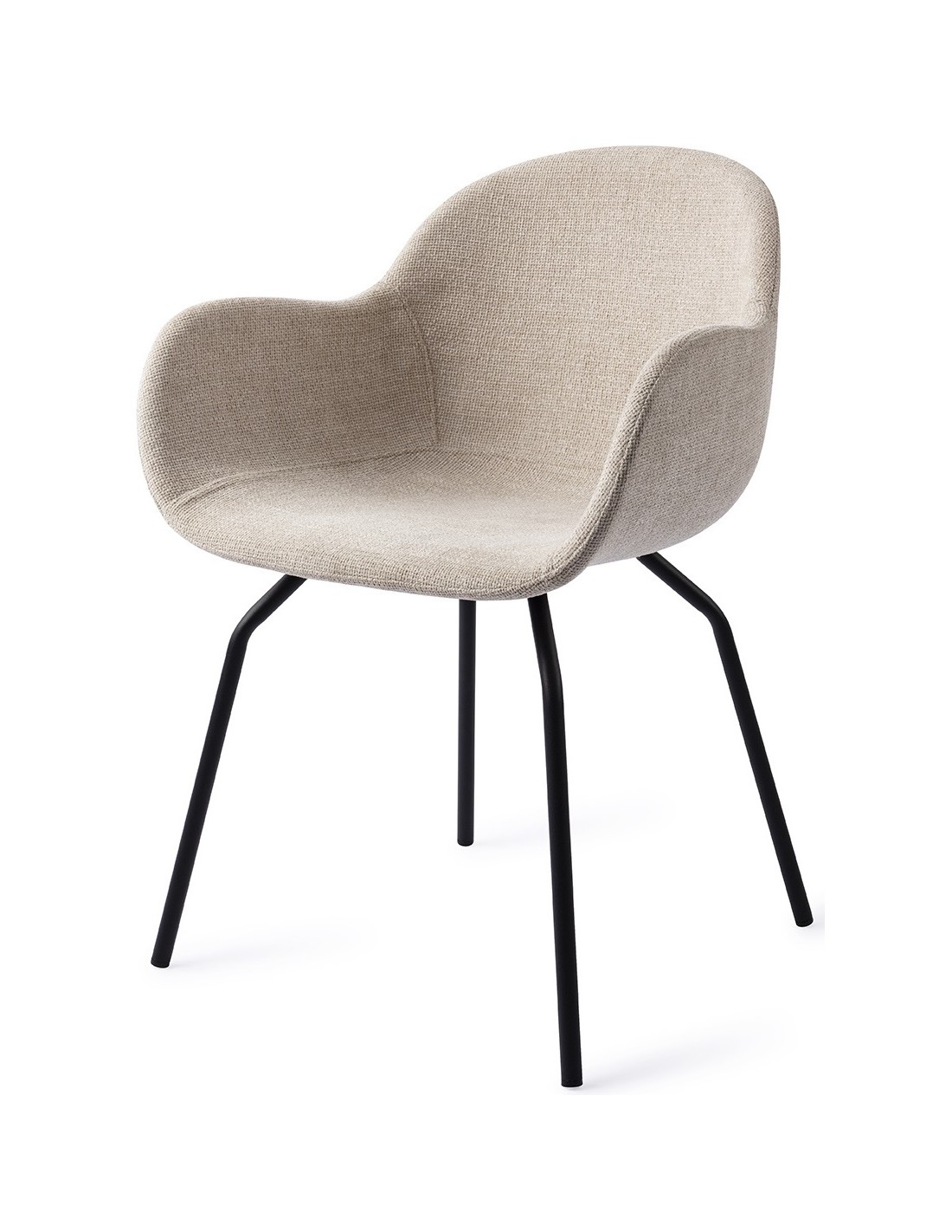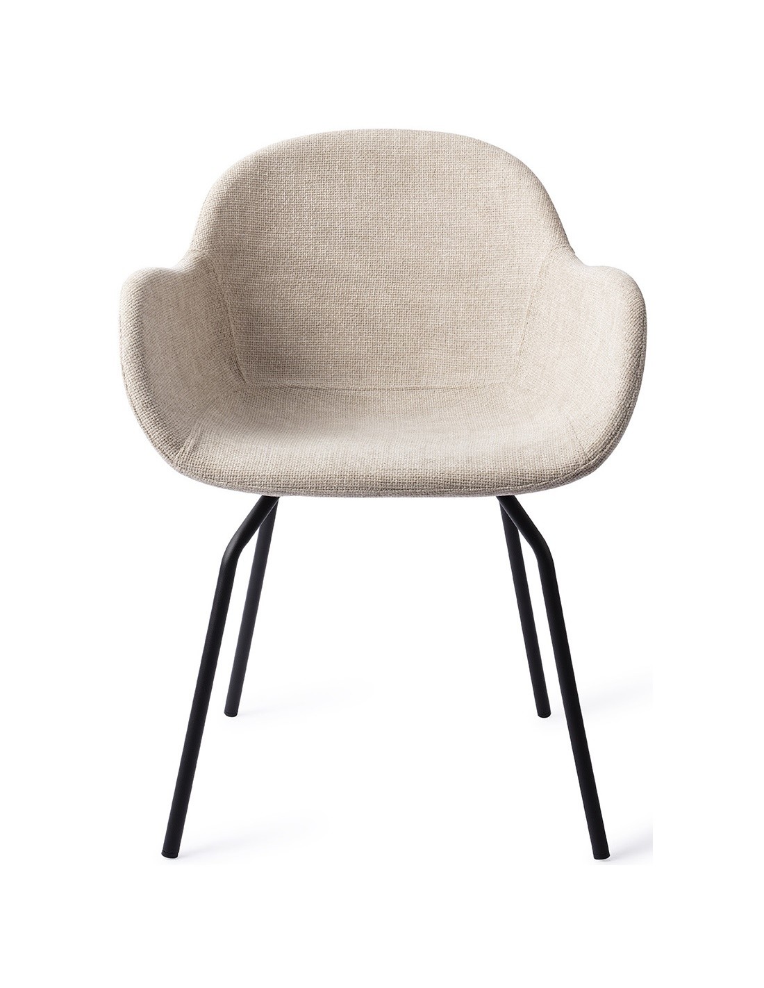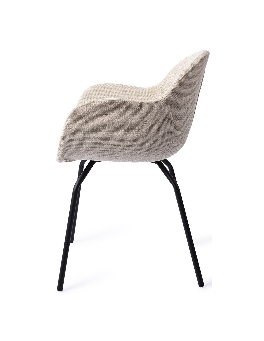 Otsu spisebordsstol udført i et moderne design, fremstillet med sæde i cremefarvet polyester og stel i sortlakeret metal. Stolen måler 80 cm i højden over ryggen og med siddehøjde på 45 cm.