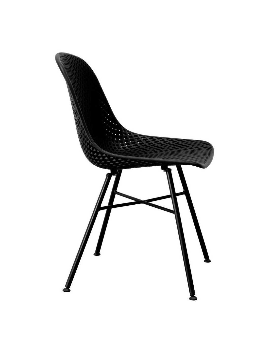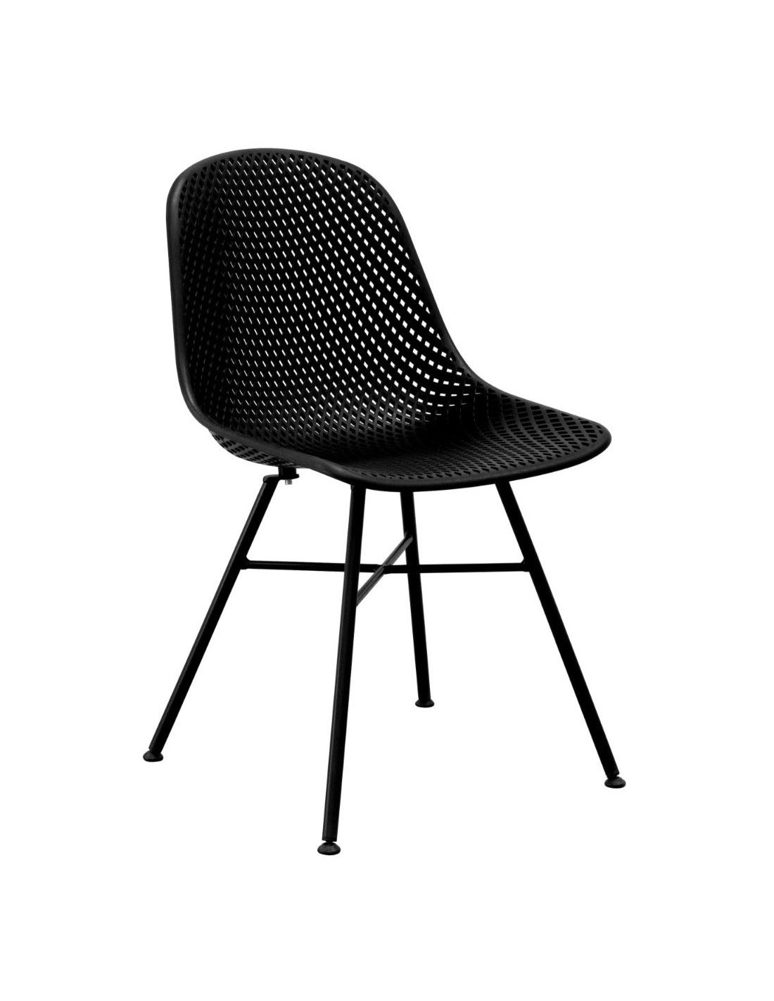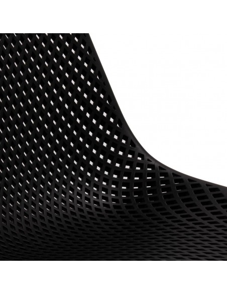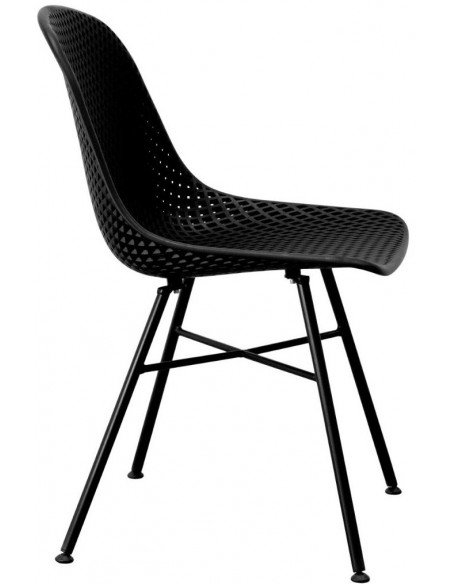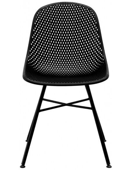 Spisebordsstol udført i et design af sortlakeret metal og sort polycarbonat. Stolen måler 84 cm i højden over ryggen og 46 cm i siddehøjde. Stolen kan også anvendes udendørs.