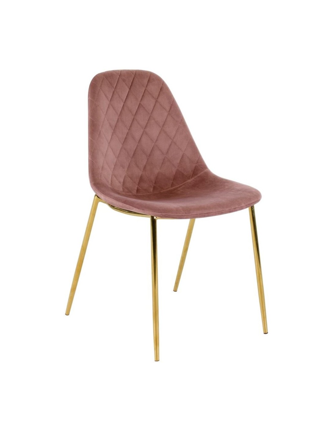 Tara spisebordsstol i metal og velour H84 cm - Guld/Rosa