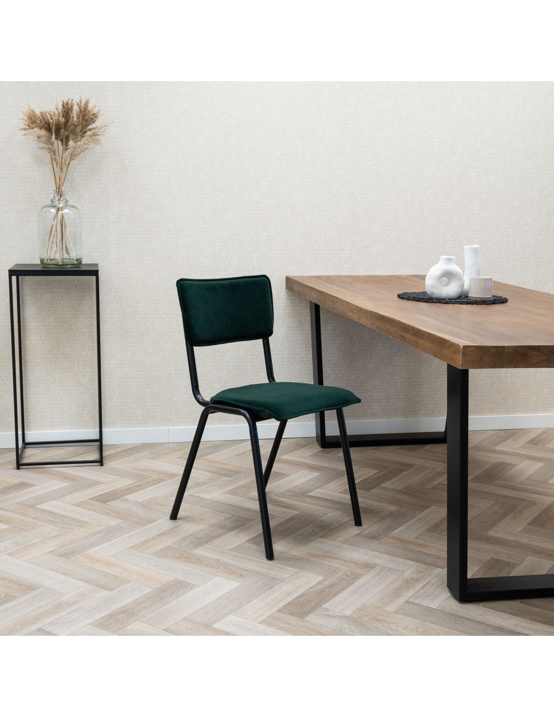 Cas spisebordsstol i metal og velour H82 cm - Sort/Mørkegrøn