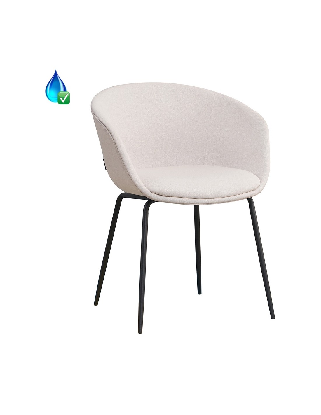 Ole spisebordsstol udført i et moderne design, fremstillet med sæde i beige genanvendt polyester og ben i sortlakeret metal. Stolen måler 83 cm i højden over ryggen og med siddehøjde på 49 cm. Tekstilen er vandafvisende og med martindale 50.000, som gør stolen særligt anvendelig til restaurationer/spisesteder.